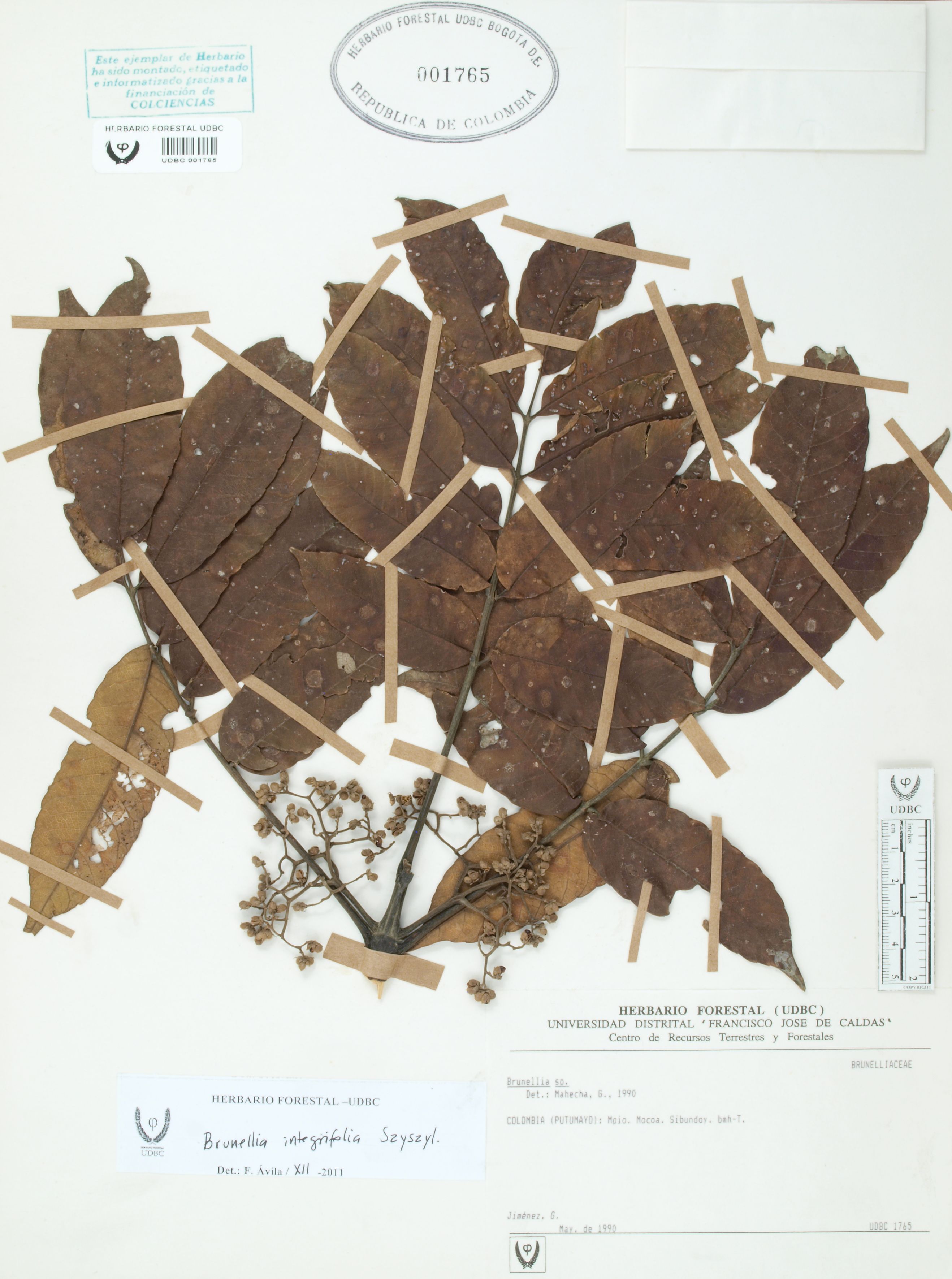 Fotografía del ejemplar Jiménez, G., determinado como Brunellia integrifolia en el año 2011