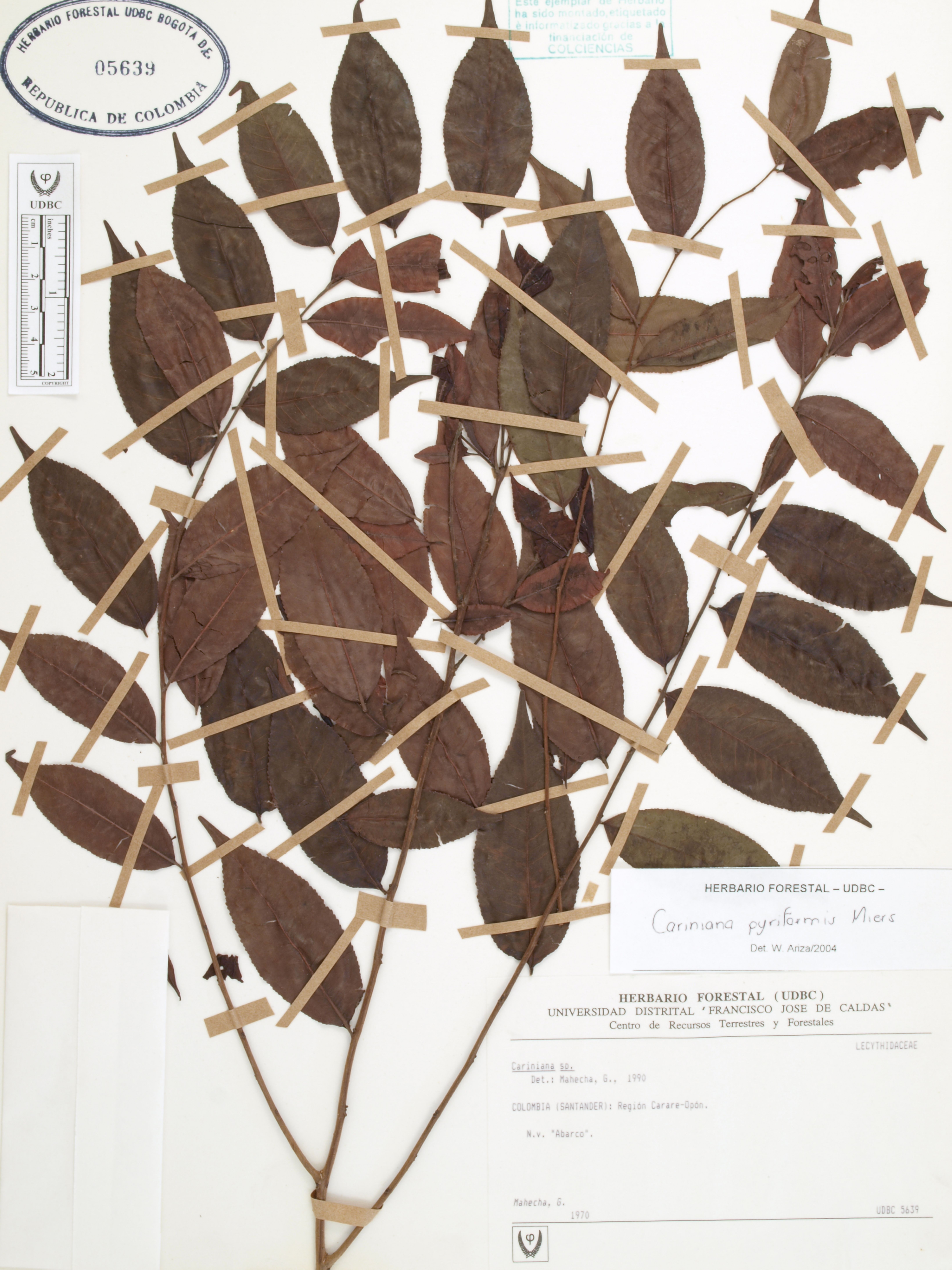 Fotografía del ejemplar Mahecha, G., determinado como Cariniana pyriformis en el año 2004