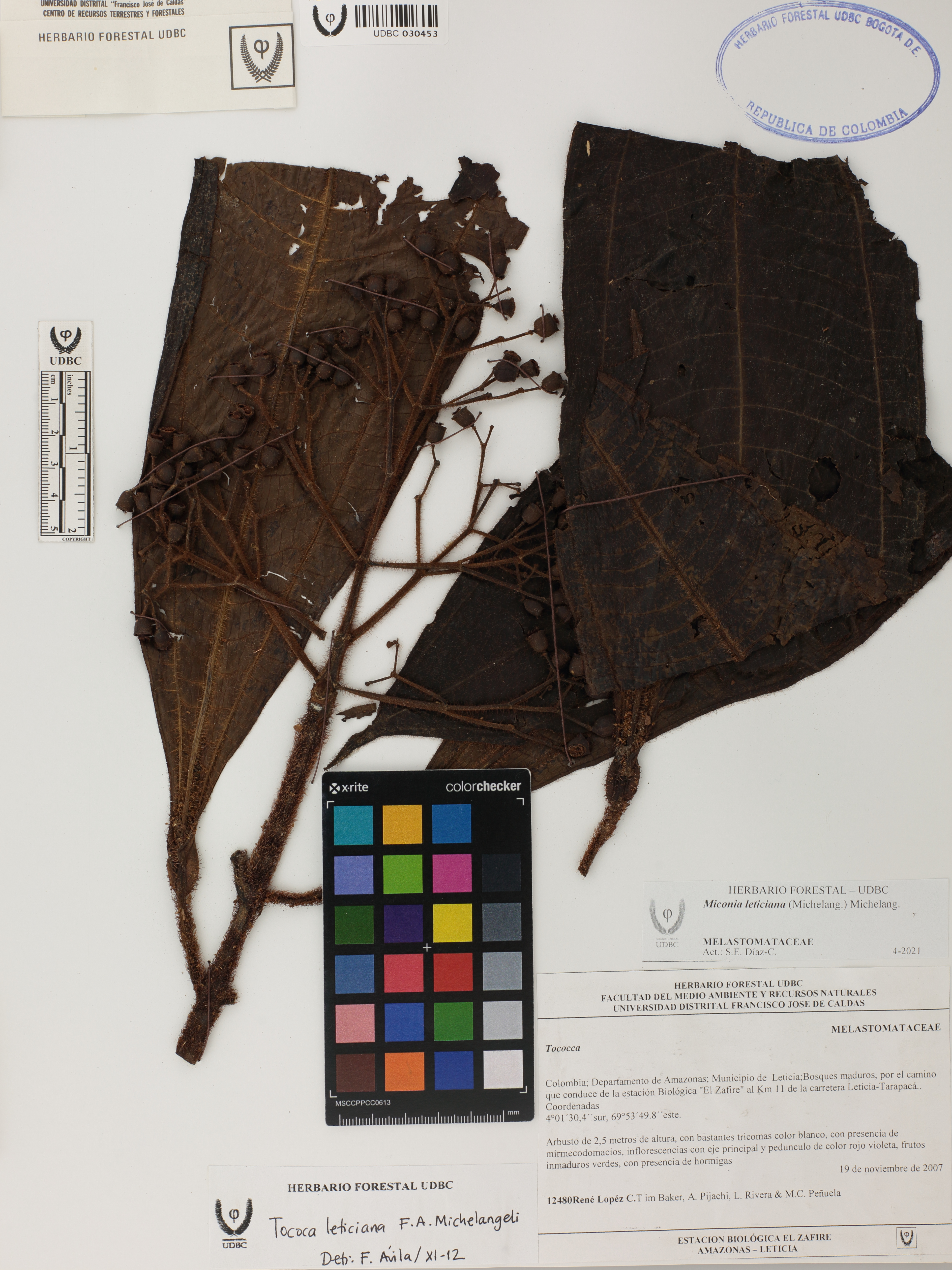 Fotografía del ejemplar López, R. 12480, determinado como Miconia leticiana en el año 2012