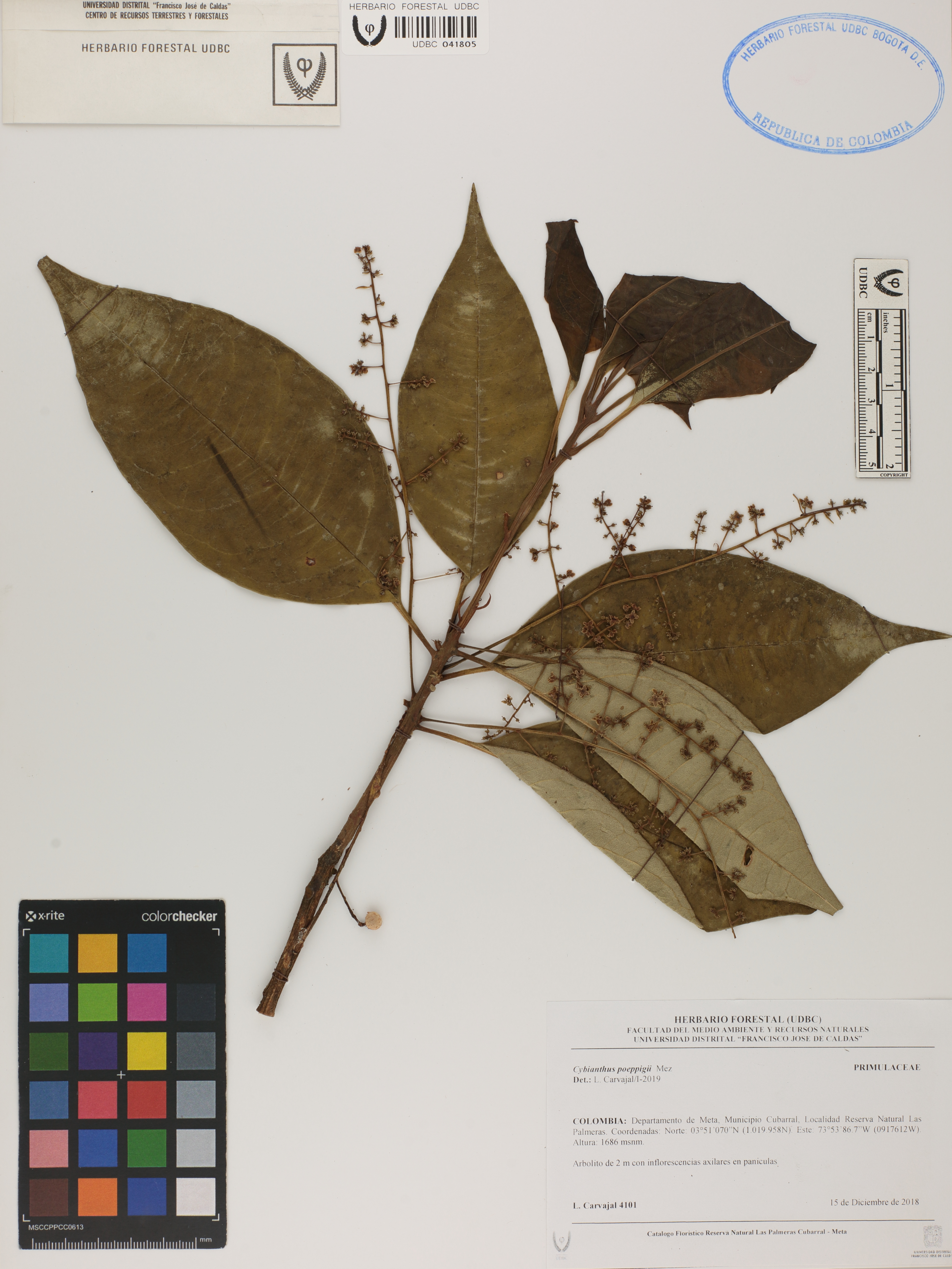 | dc.description | Fotografía del ejemplar Carvajal, L. 4101, determinado como Cybianthus poeppigii en el año 2019 | |