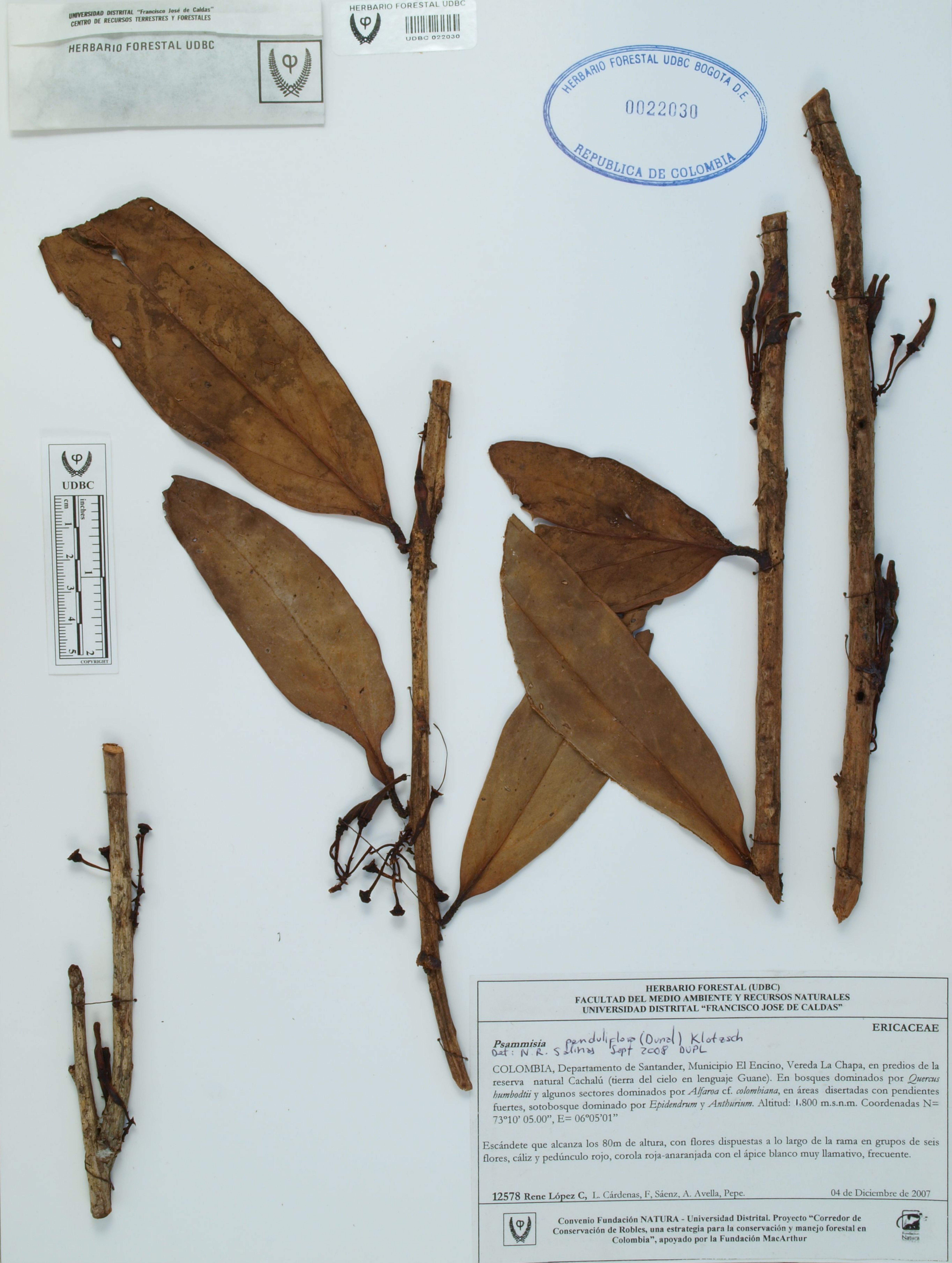 Fotografía del ejemplar López, R. 12578, determinado como Psammisia penduliflora en el año 2008