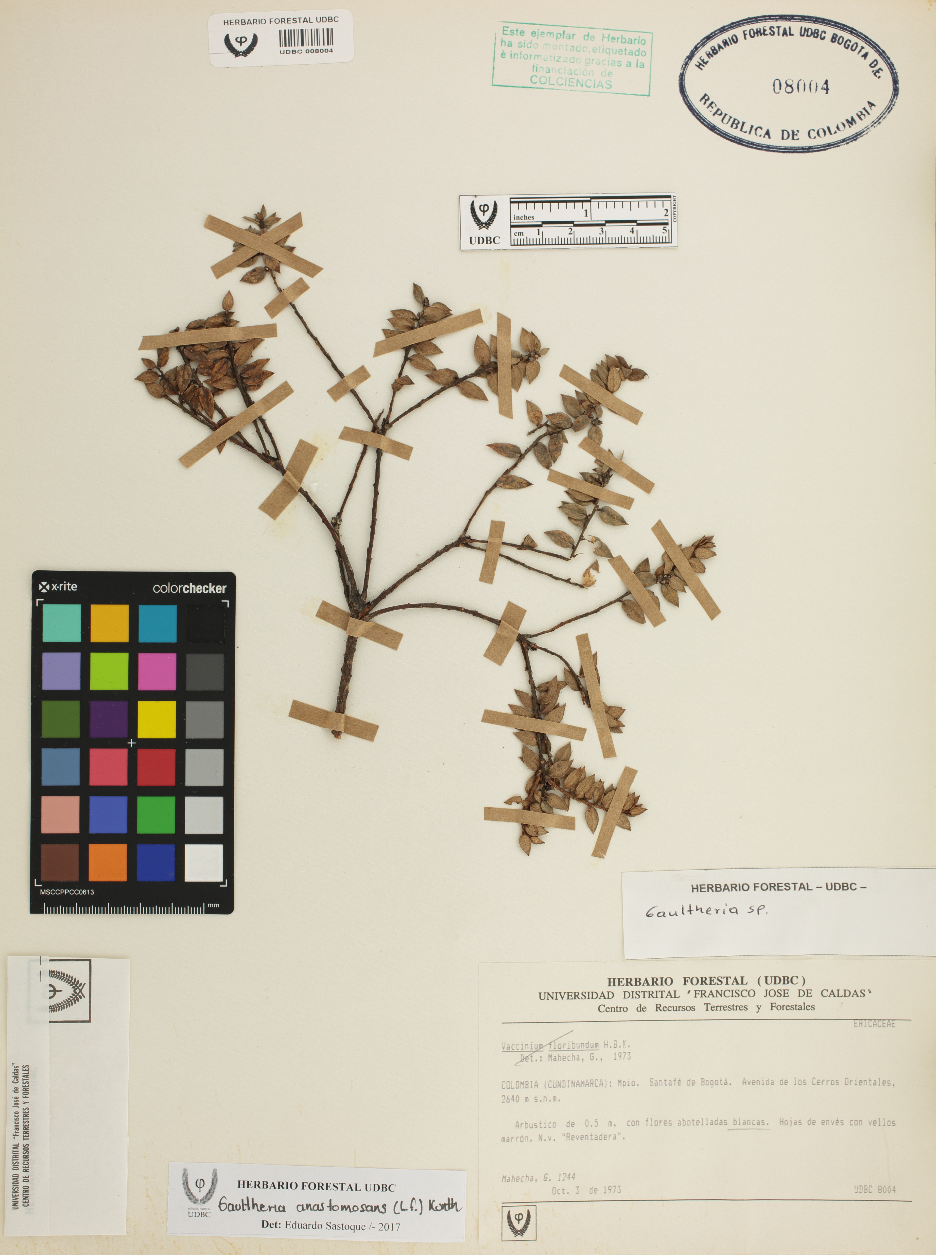 Fotografía del ejemplar Mahecha, G. 1244, determinado como Gaultheria anastomosans en el año 2017