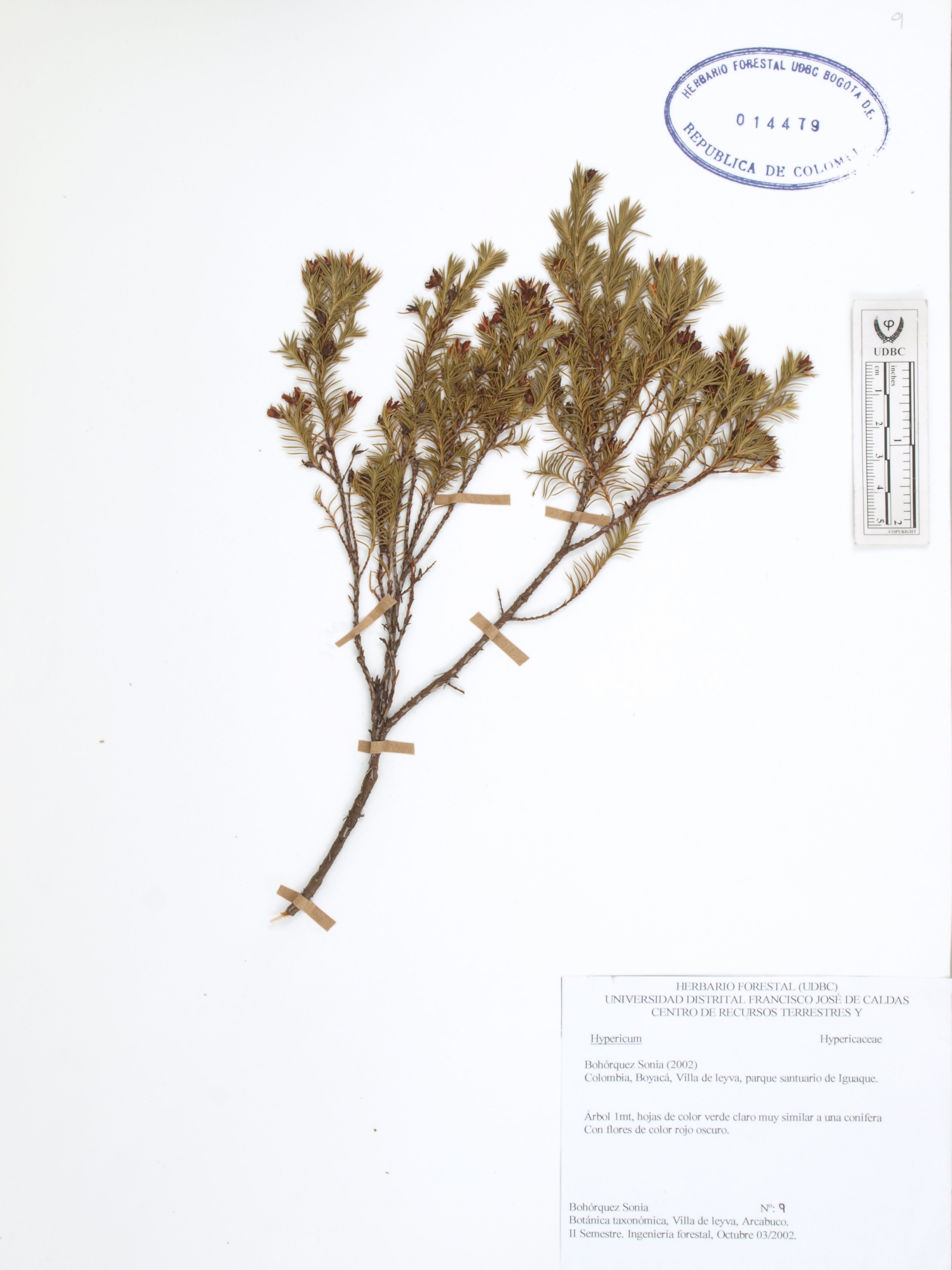 Fotografía del ejemplar Bohórquez, S. 9, determinado como Hypericum sp.