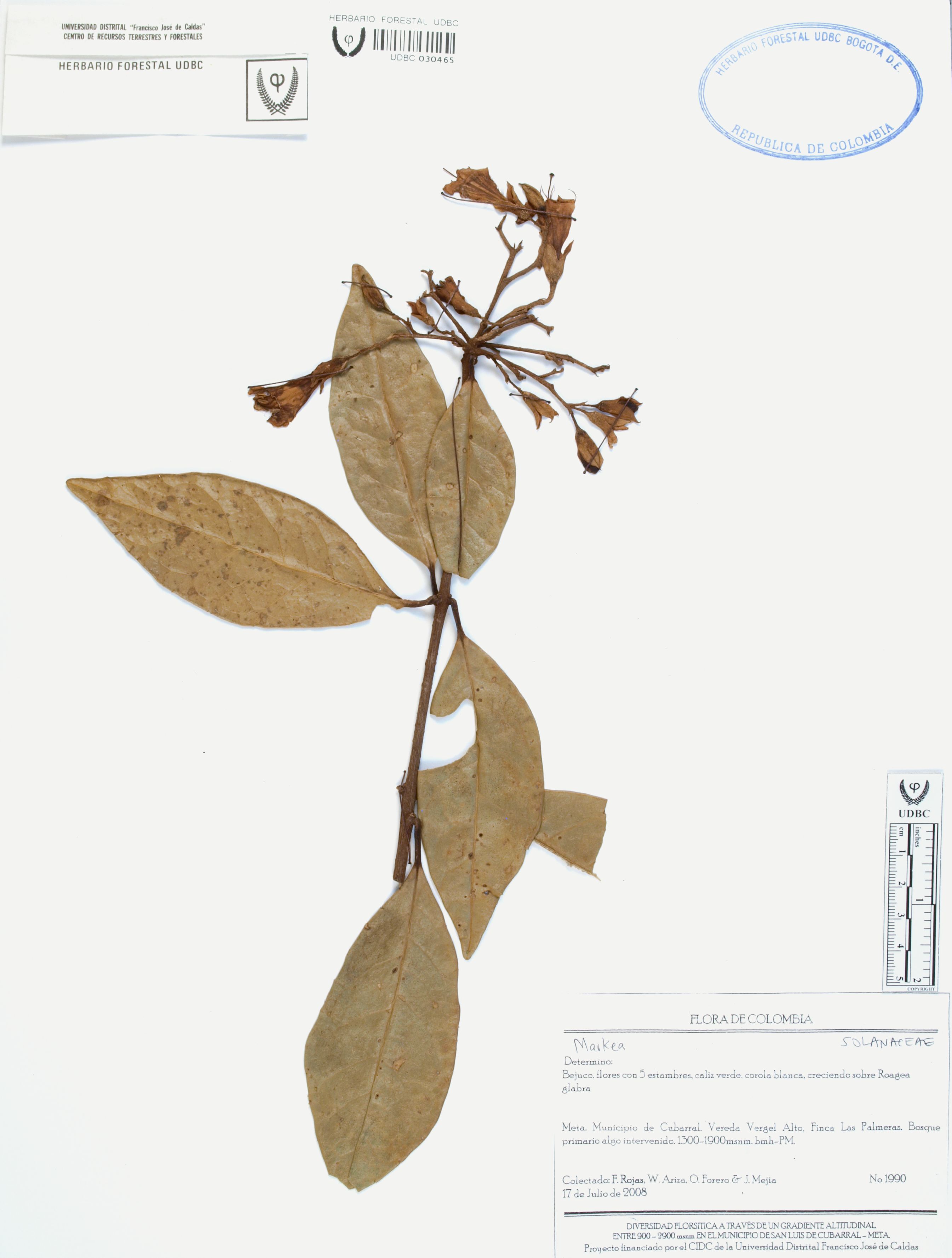 Fotografía del ejemplar Rojas, F. 1990, determinado como Markea sp.