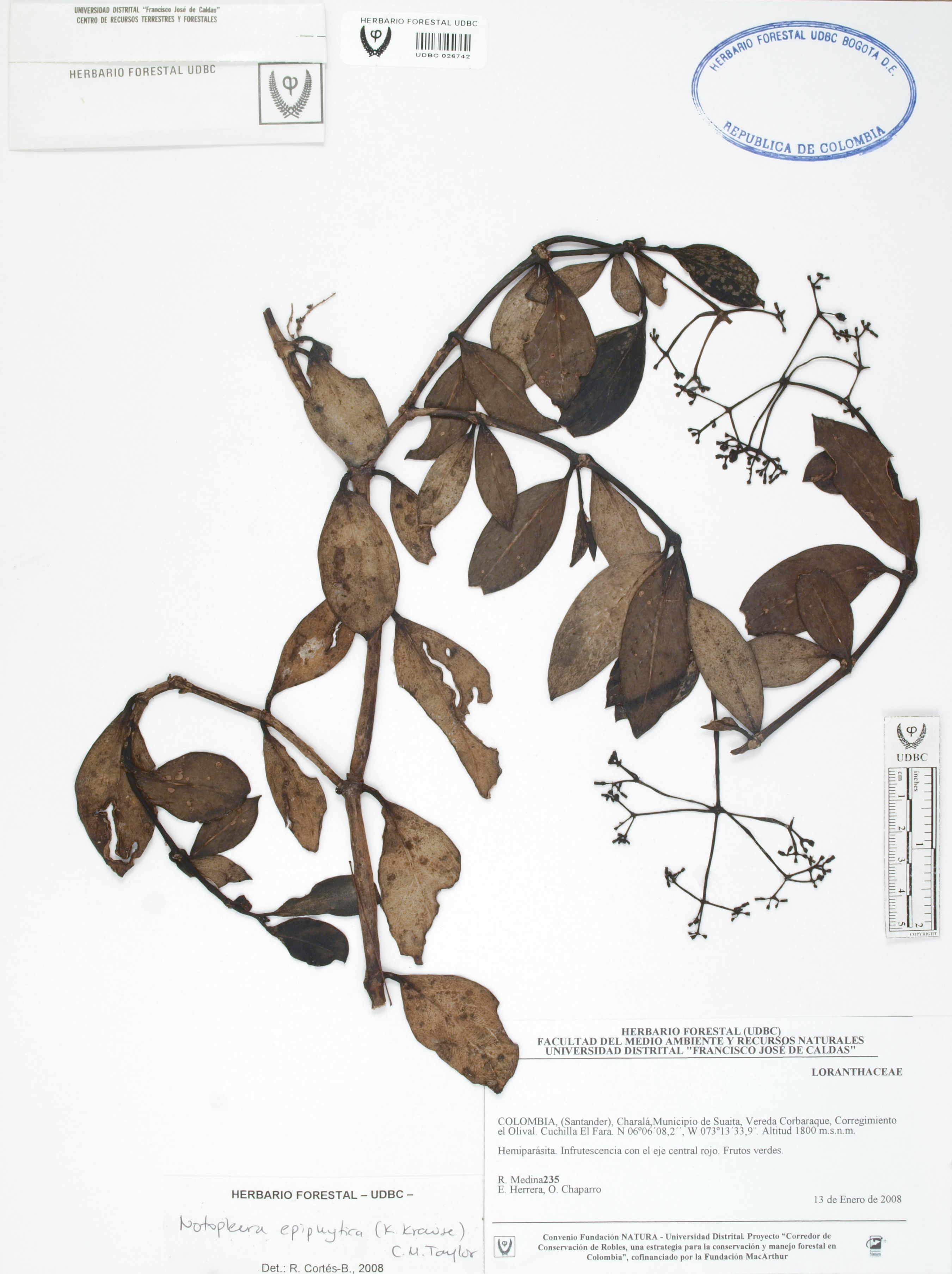 Fotografía del ejemplar Medina, R. 235, determinado como Notopleura epiphytica en el año 2008