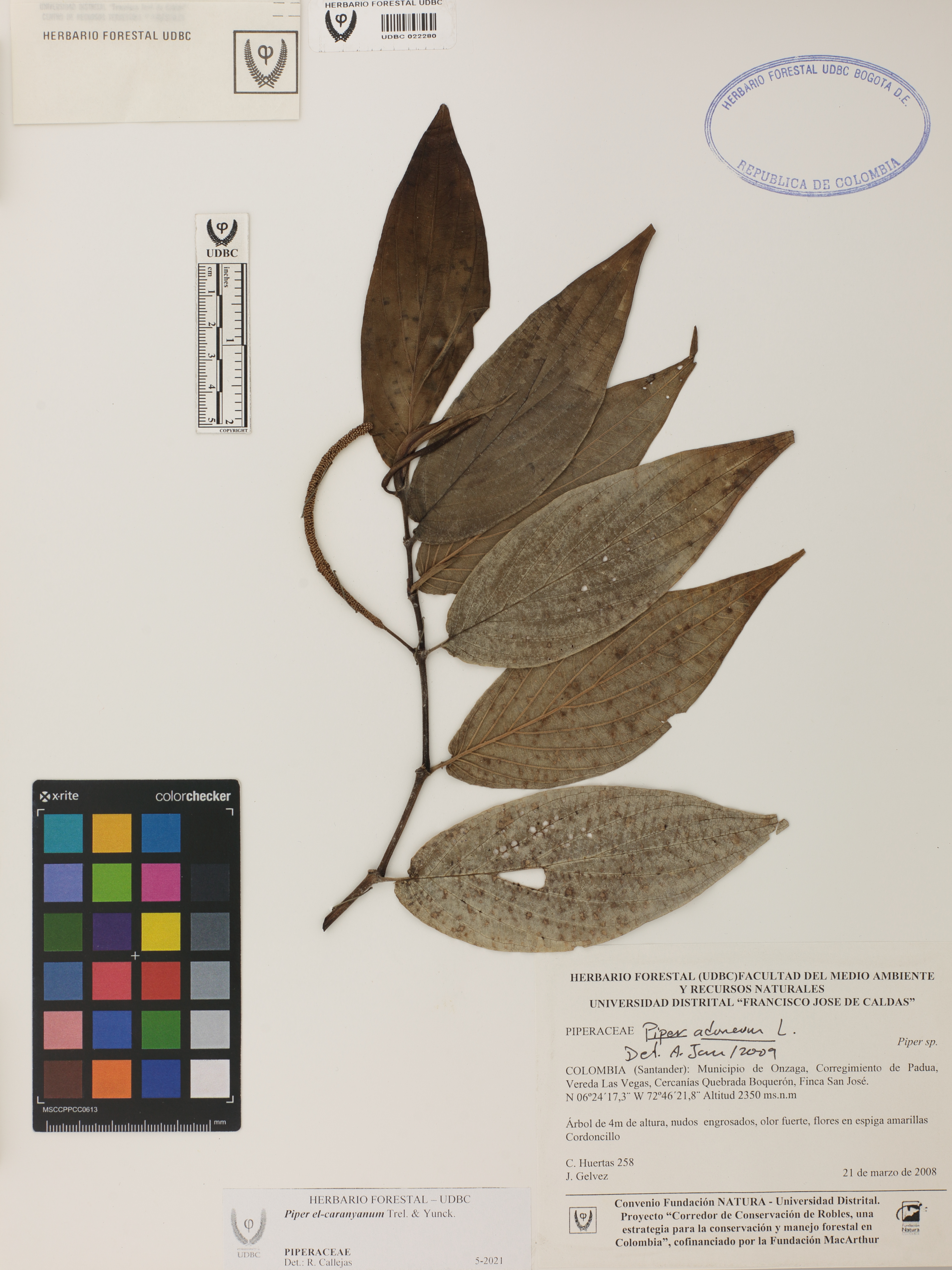 Fotografía del ejemplar Huertas, C. 258, determinado como Piper el-caranyanum en el año 2021