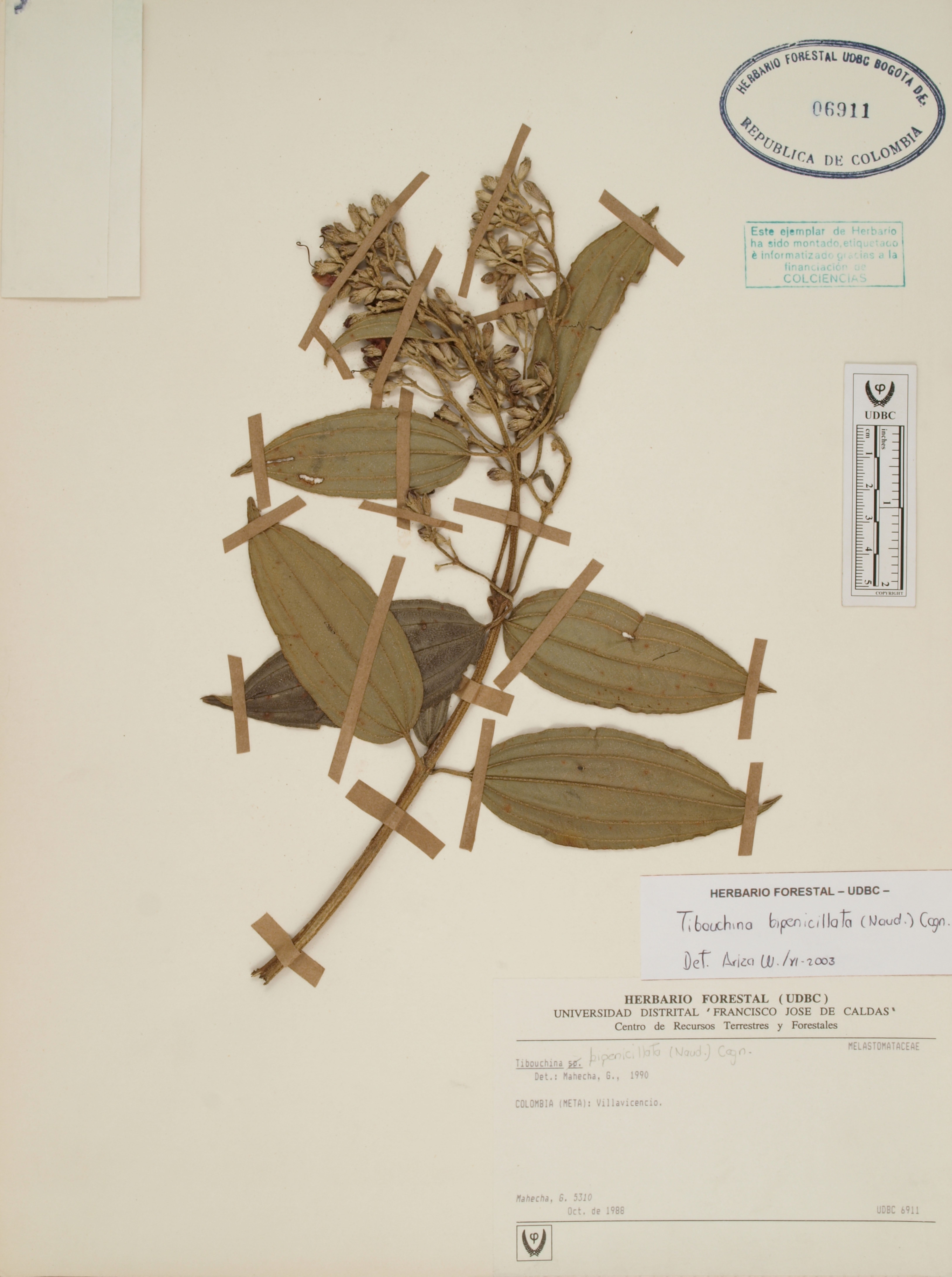 Fotografía del ejemplar Mahecha, G. 5310, determinado como Tibouchina bipenicillata en el año 2003