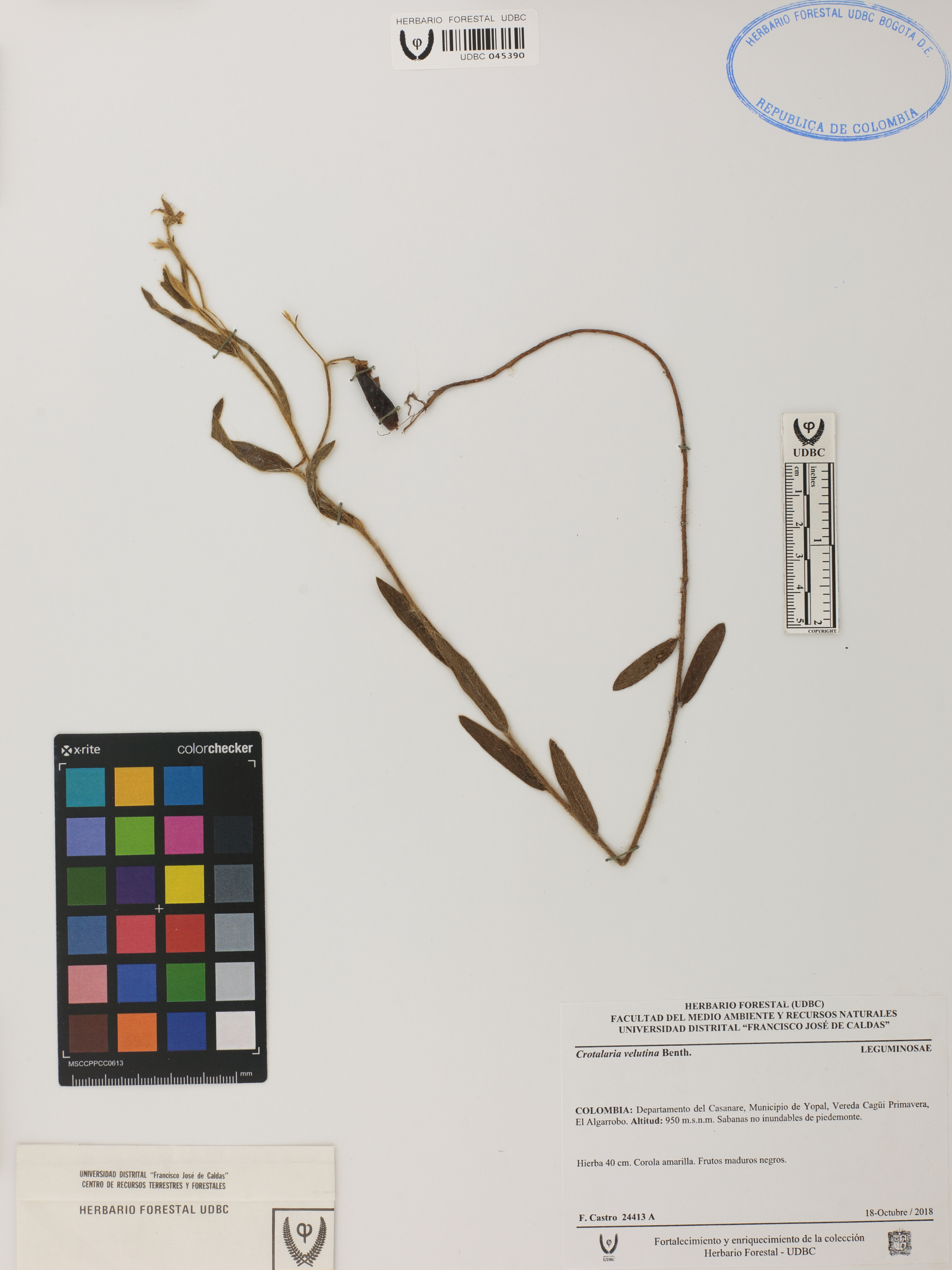 Fotografía del ejemplar Castro, F. 24413A, determinado como Crotalaria velutina en el año 2018