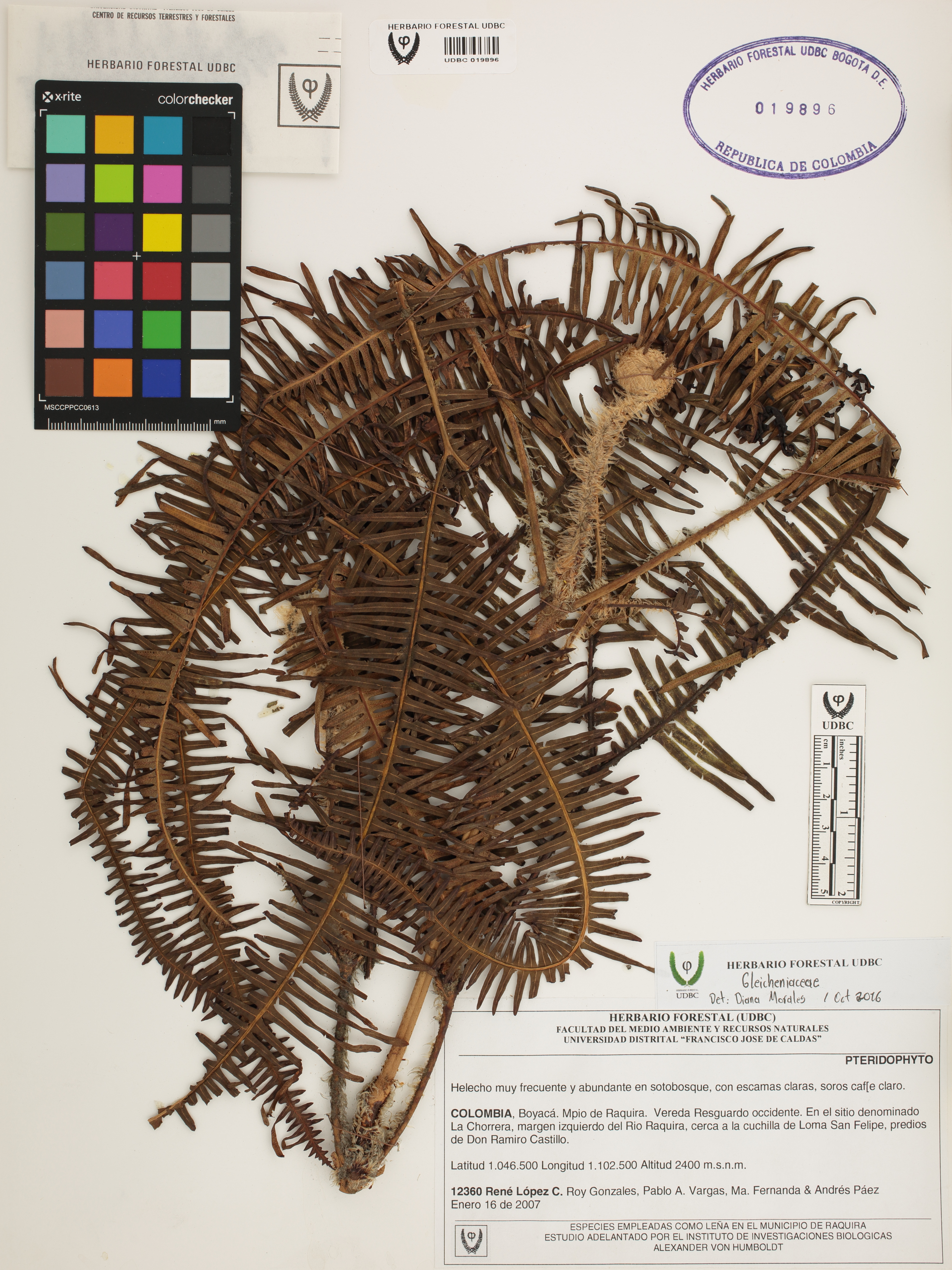 Fotografía del ejemplar López, R. 12360, determinado como Gleicheniaceae en el año 2016
