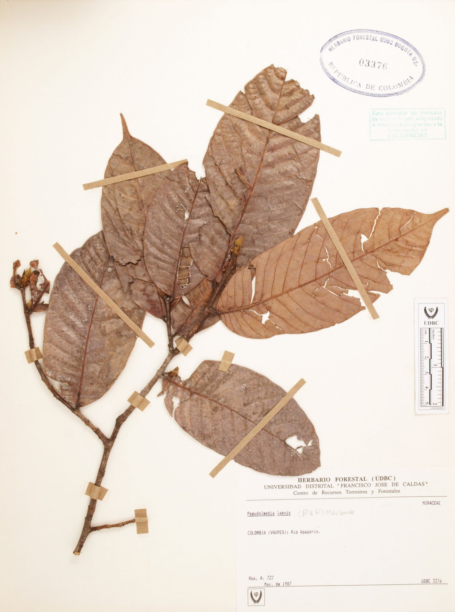 Fotografía del ejemplar Roa, A. 722, determinado como Pseudolmedia laevis