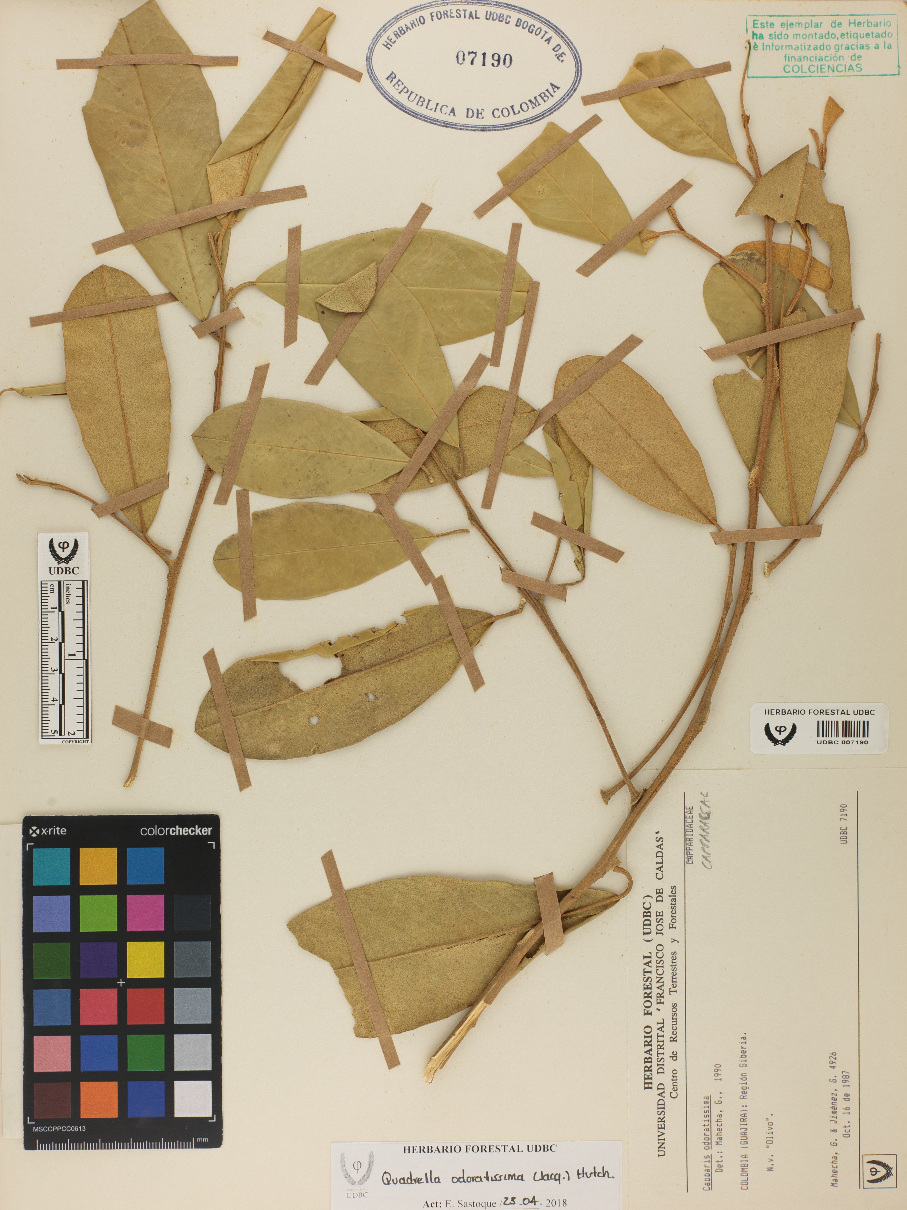 Fotografía del ejemplar Mahecha, G. 4926, determinado como Quadrella odoratissima en el año 1990
