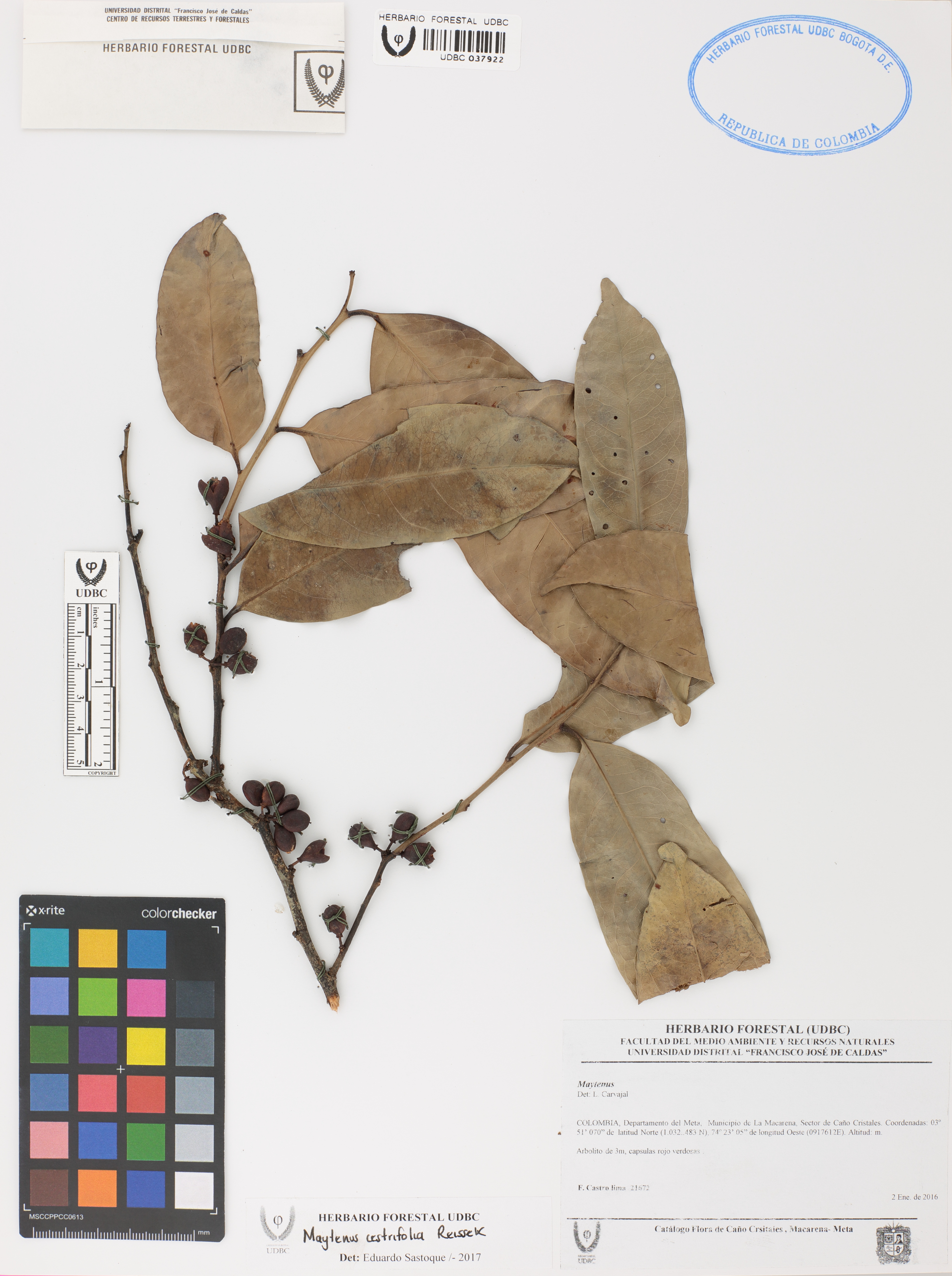 | dc.description | Fotografía del ejemplar Castro, F. 21672, determinado como Monteverdia cestrifolia en el año 2017 | |