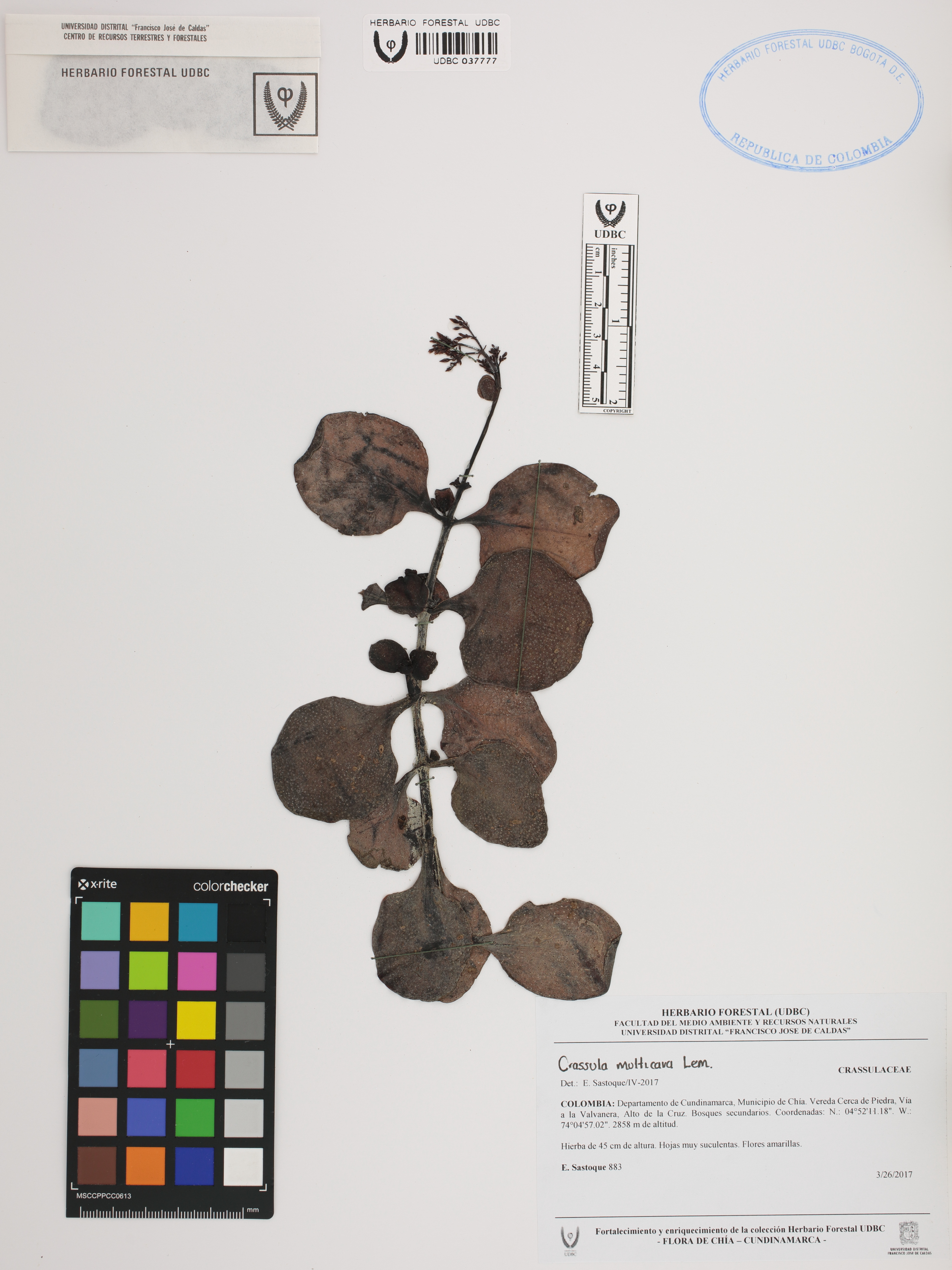 | dc.description | Fotografía del ejemplar Sastoque, E. 883, determinado como Crassula multicava en el año 2017 | |