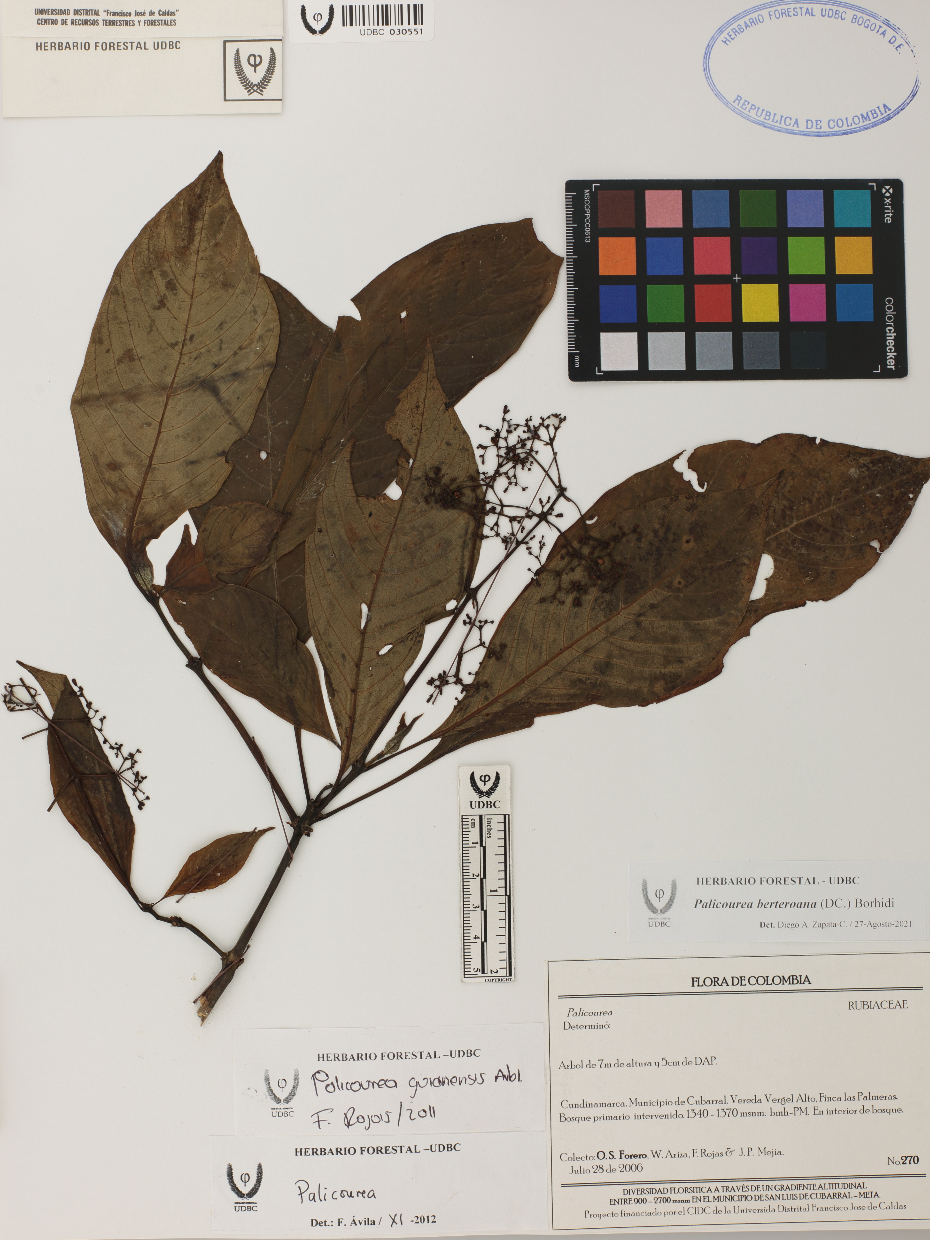 | dc.description | Fotografía del ejemplar Forero, O. 270, determinado como Palicourea berteroana en el año 2021 | |