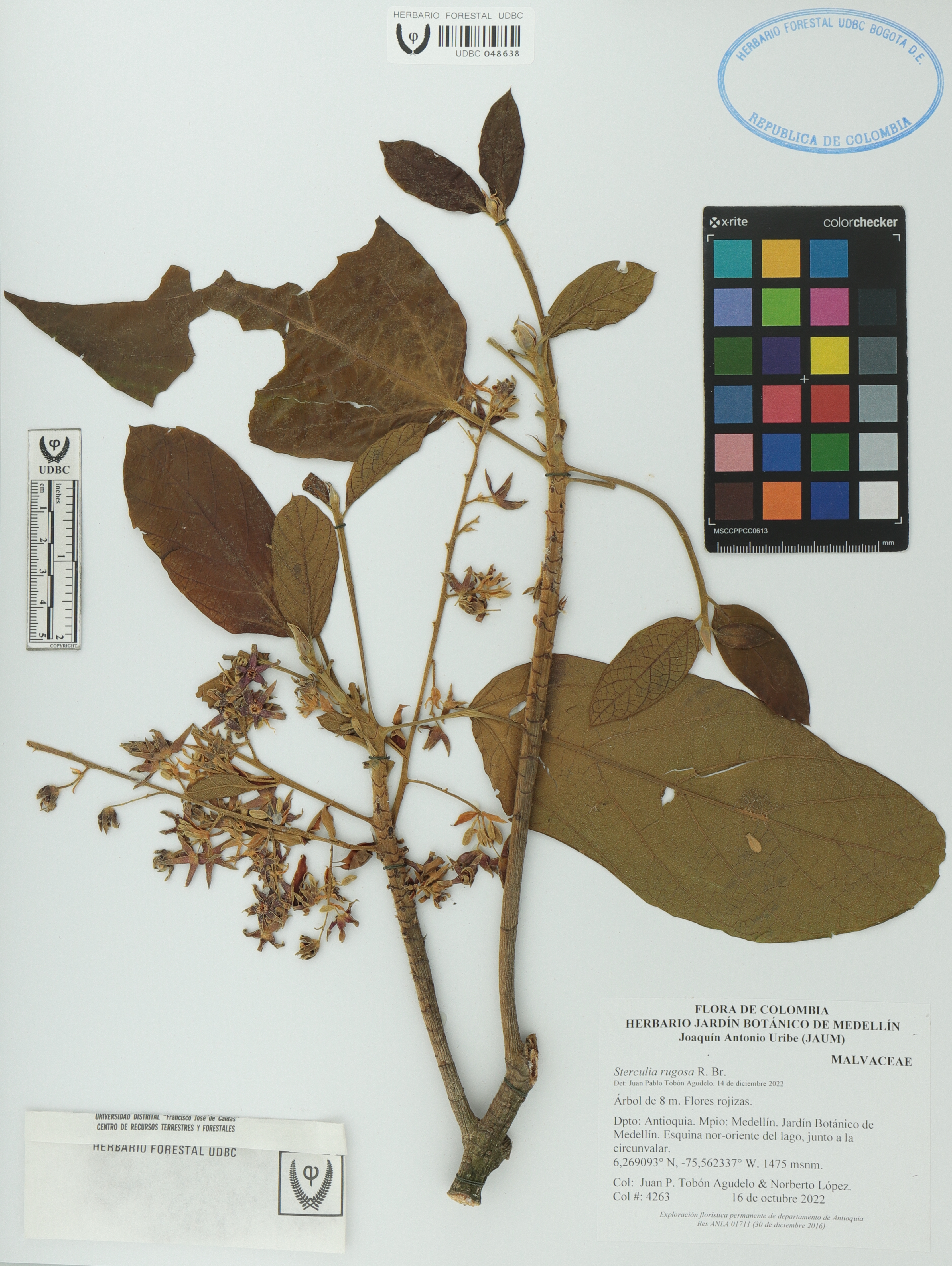 Fotografía del ejemplar Tobón-A., J. 4263, determinado como Sterculia rugosa en el año 2022