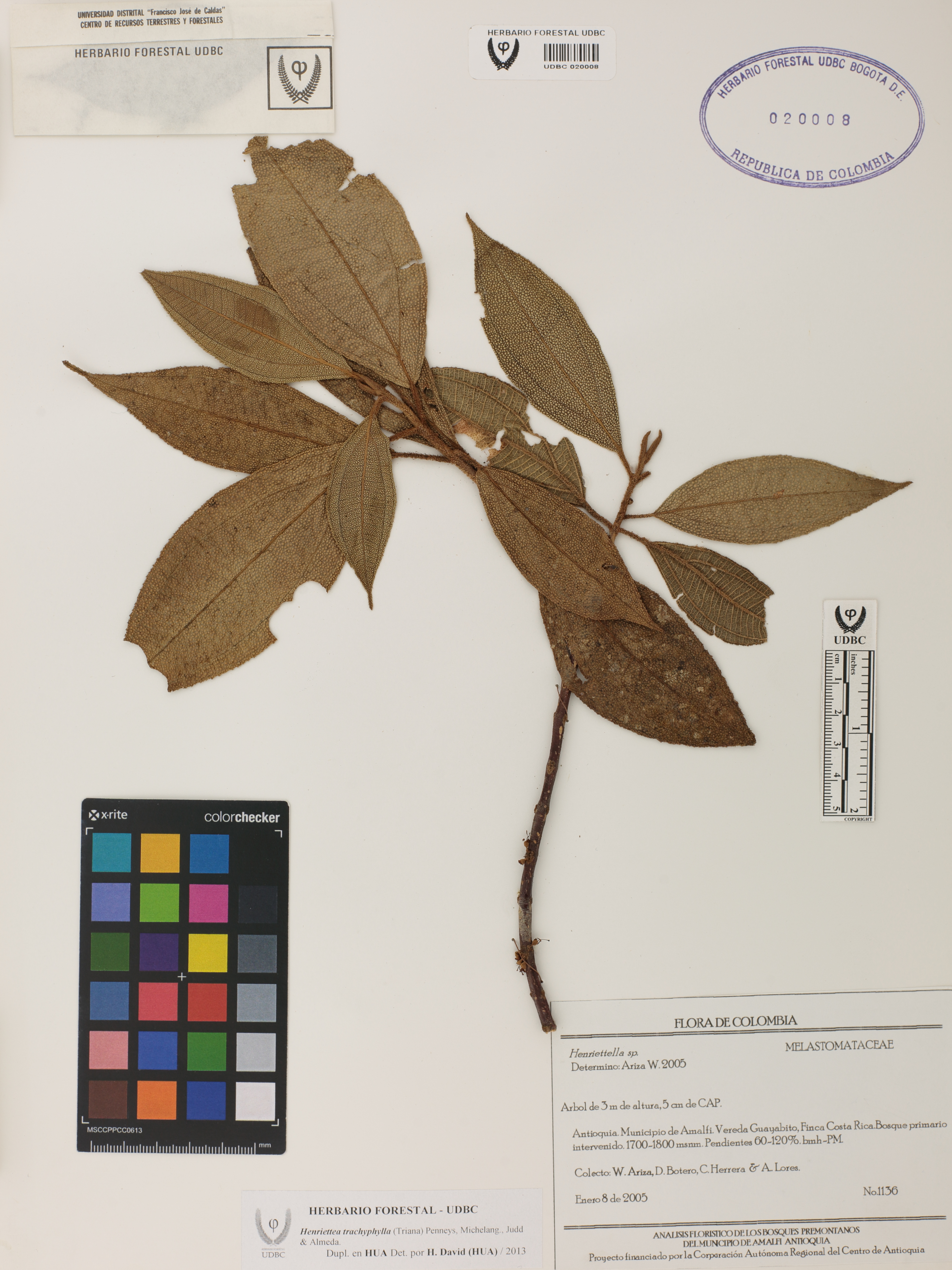 Fotografía del ejemplar Ariza, W. 1136, determinado como Henriettea trachyphylla en el año 2013