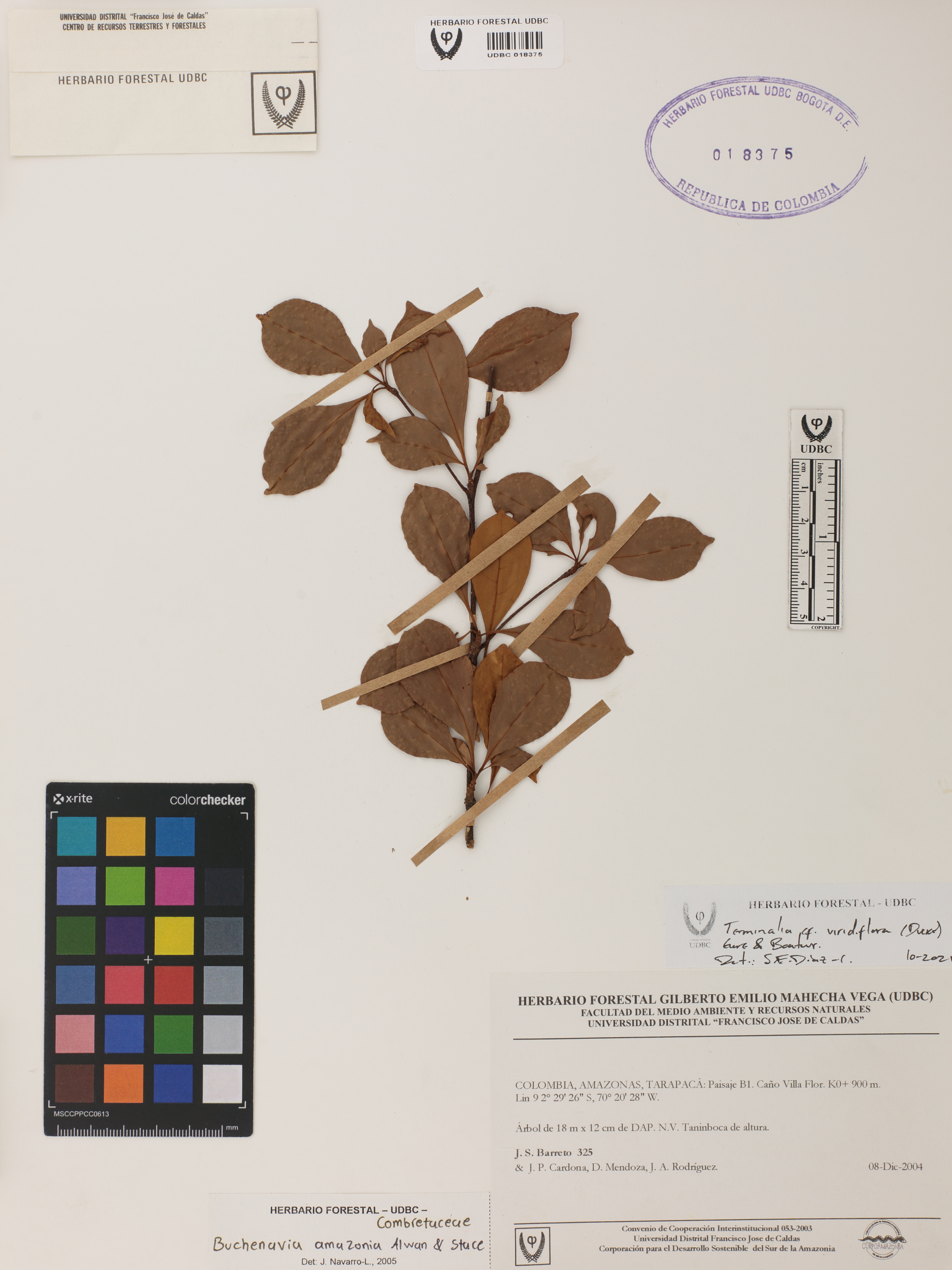 | dc.description | Fotografía del ejemplar Barreto, J. 325, determinado como Terminalia viridiflora en el año 2005 | |