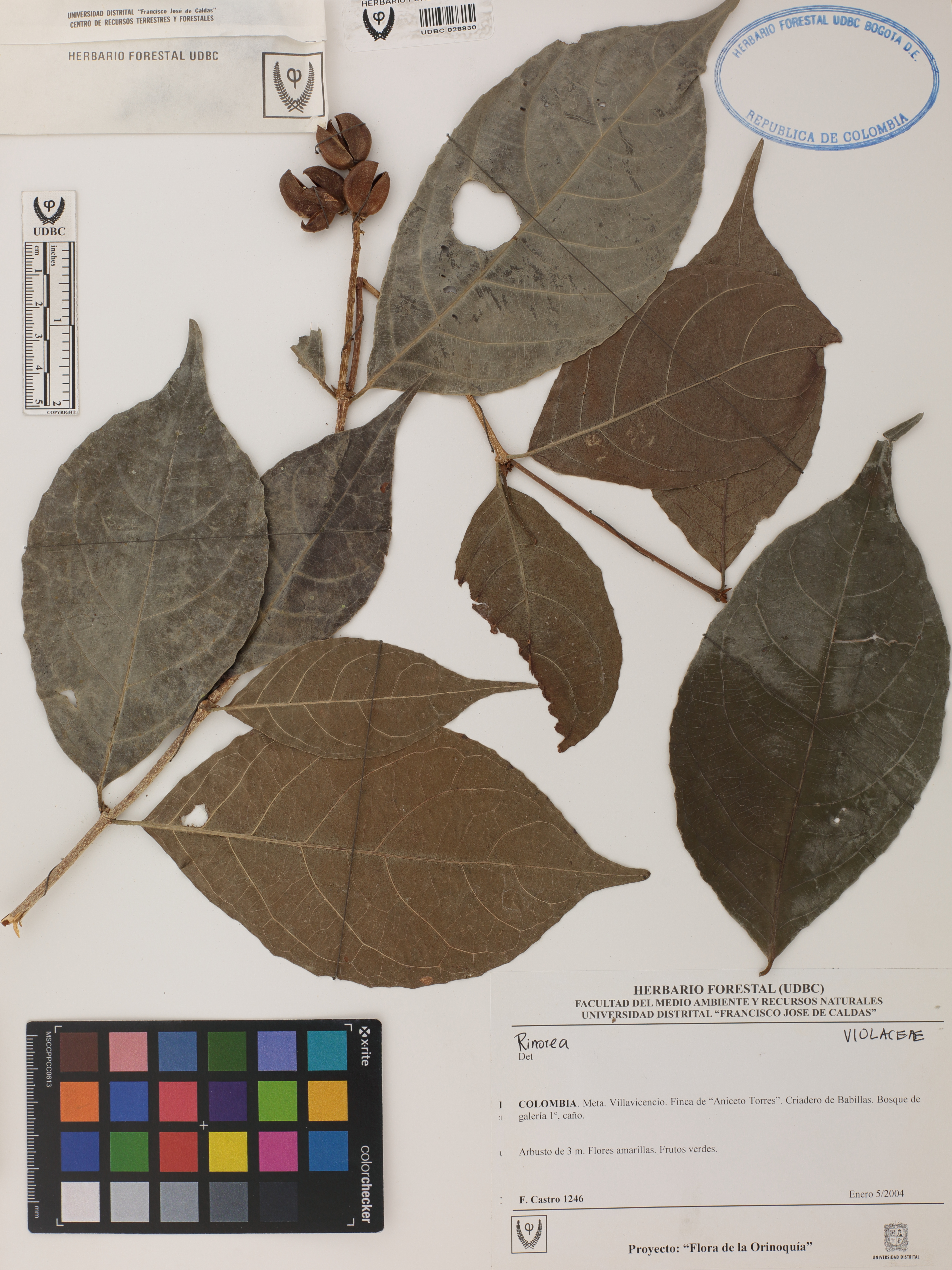 Fotografía del ejemplar Castro, F. 1246, determinado como Rinorea sp.
