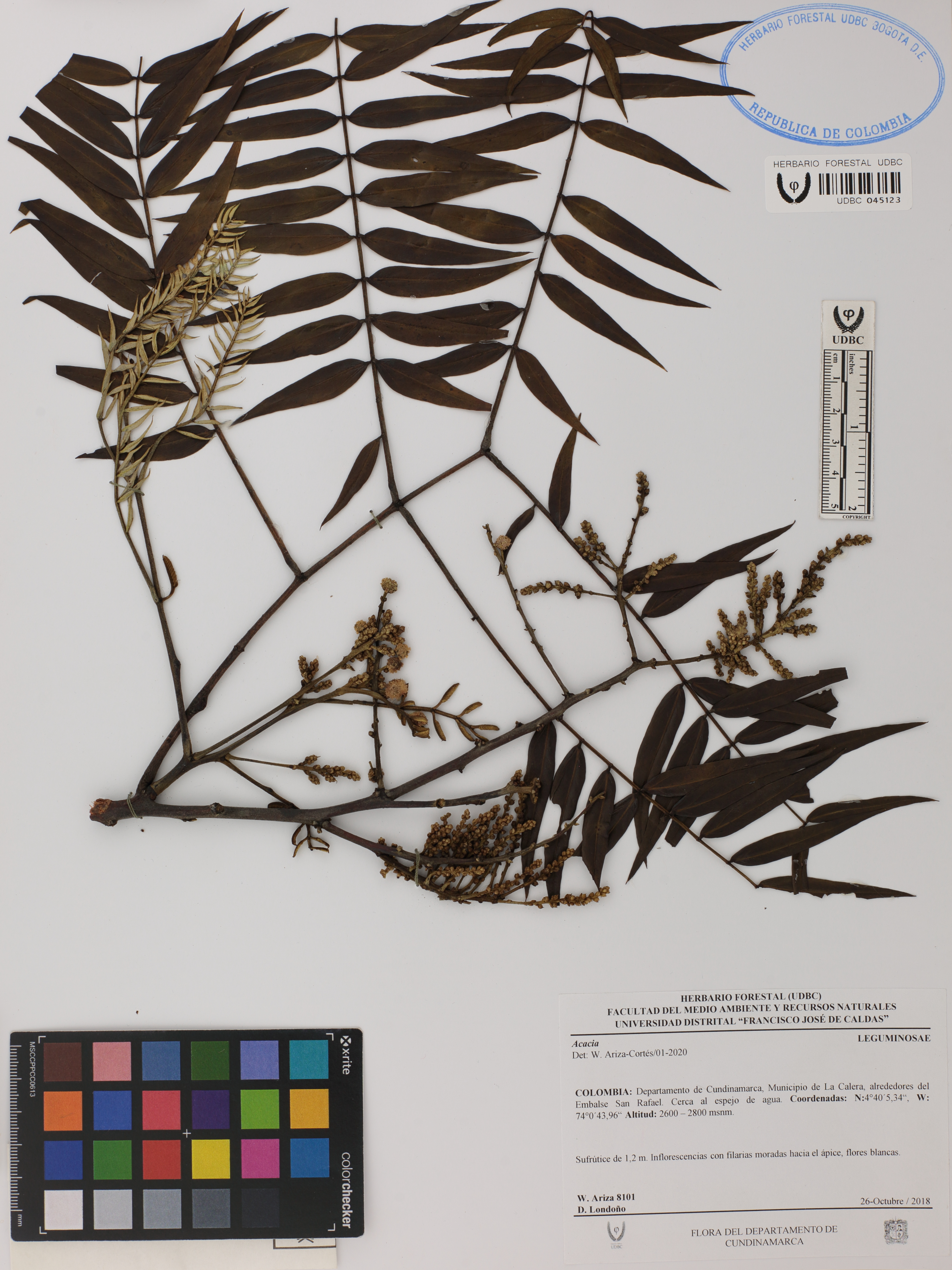 Fotografía del ejemplar Ariza-Cortés, W. 8101, determinado como Acacia sp. en el año 2020