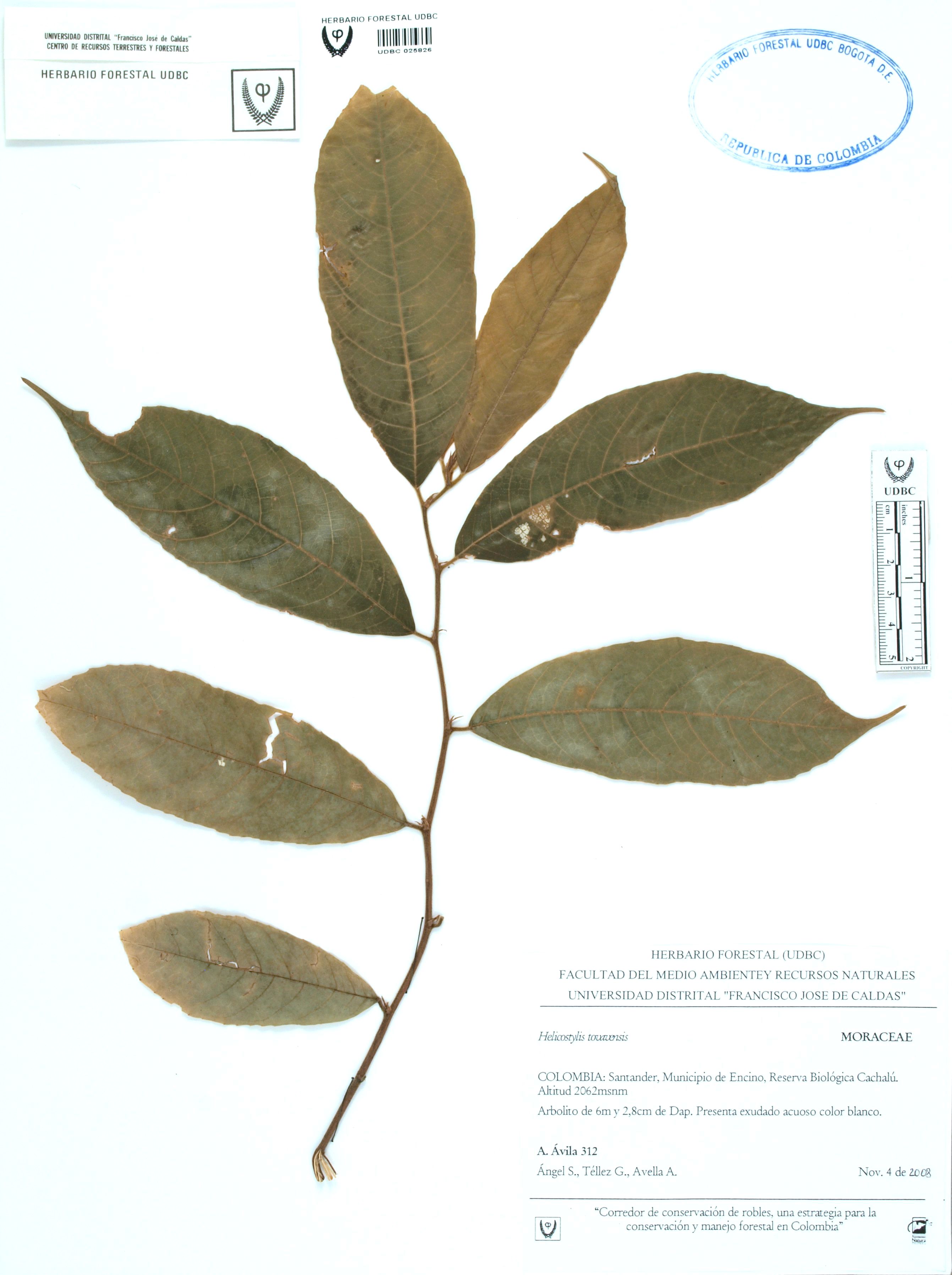 Fotografía del ejemplar Ávila, F. 312, determinado como Helicostylis tovarensis