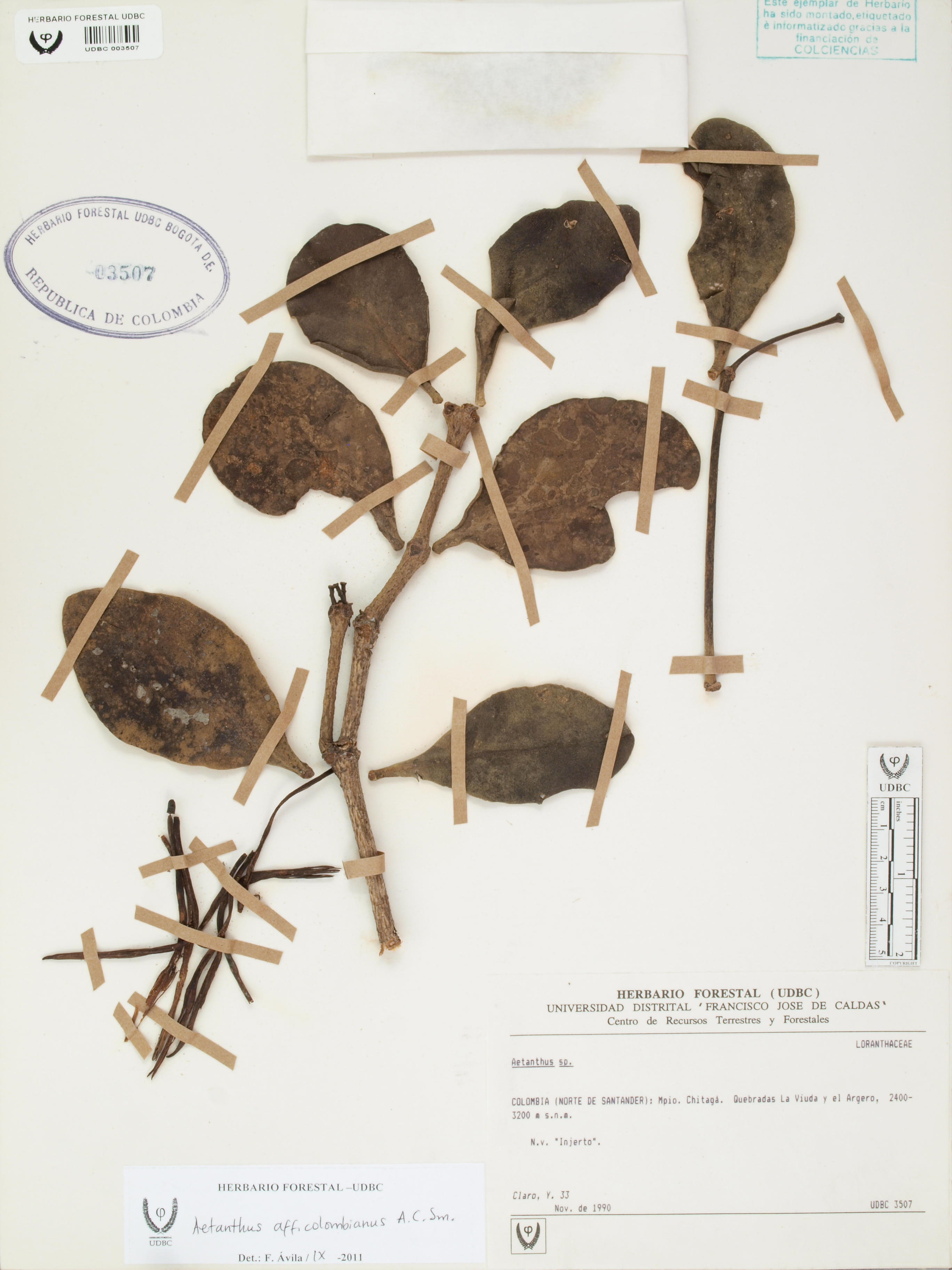 Fotografía del ejemplar Claro, Y. 33, determinado como Aetanthus colombianus en el año 2011