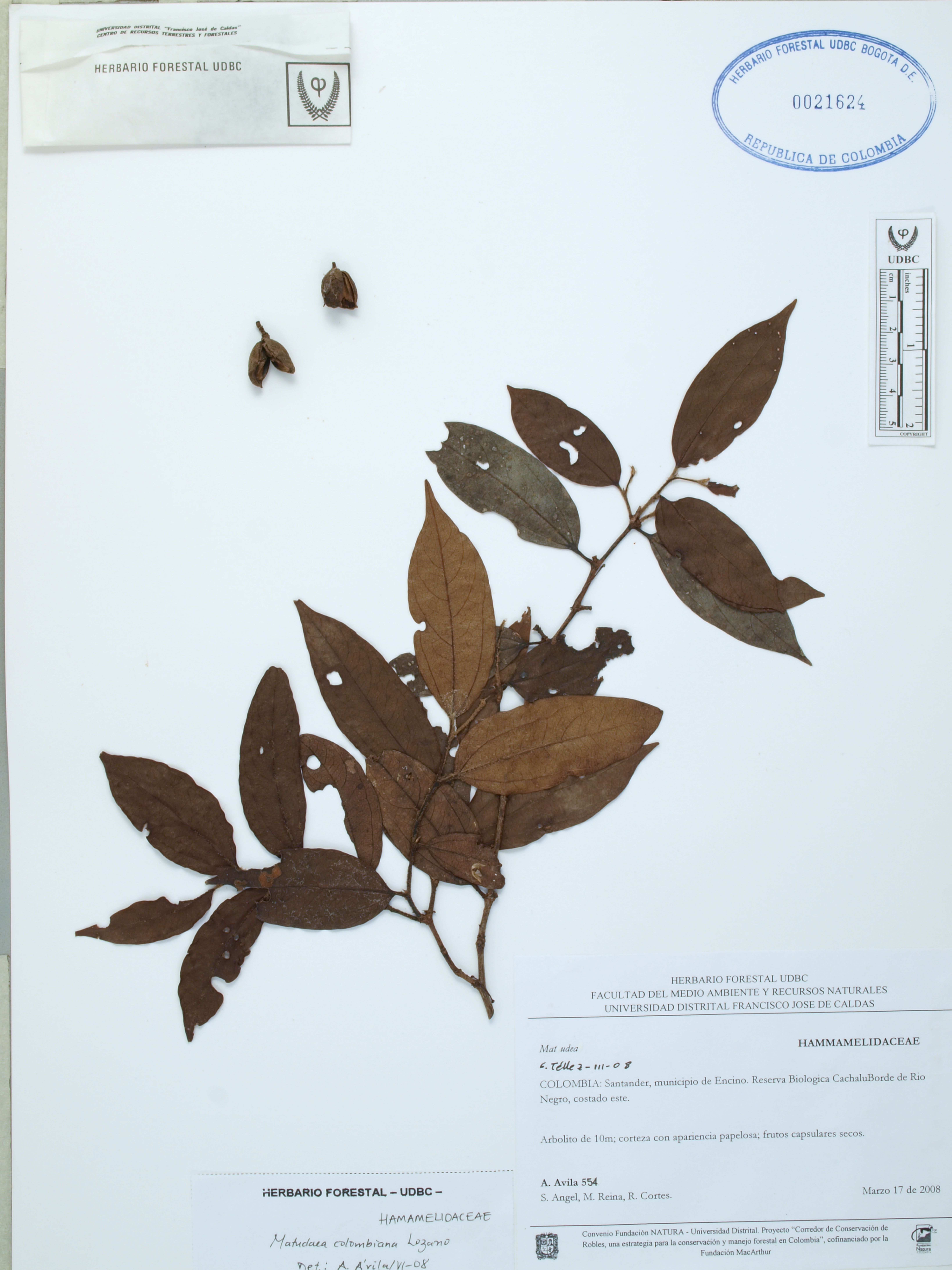 | dc.description | Fotografía del ejemplar Ávila, F. 554, determinado como Matudaea colombiana en el año 2008 | |