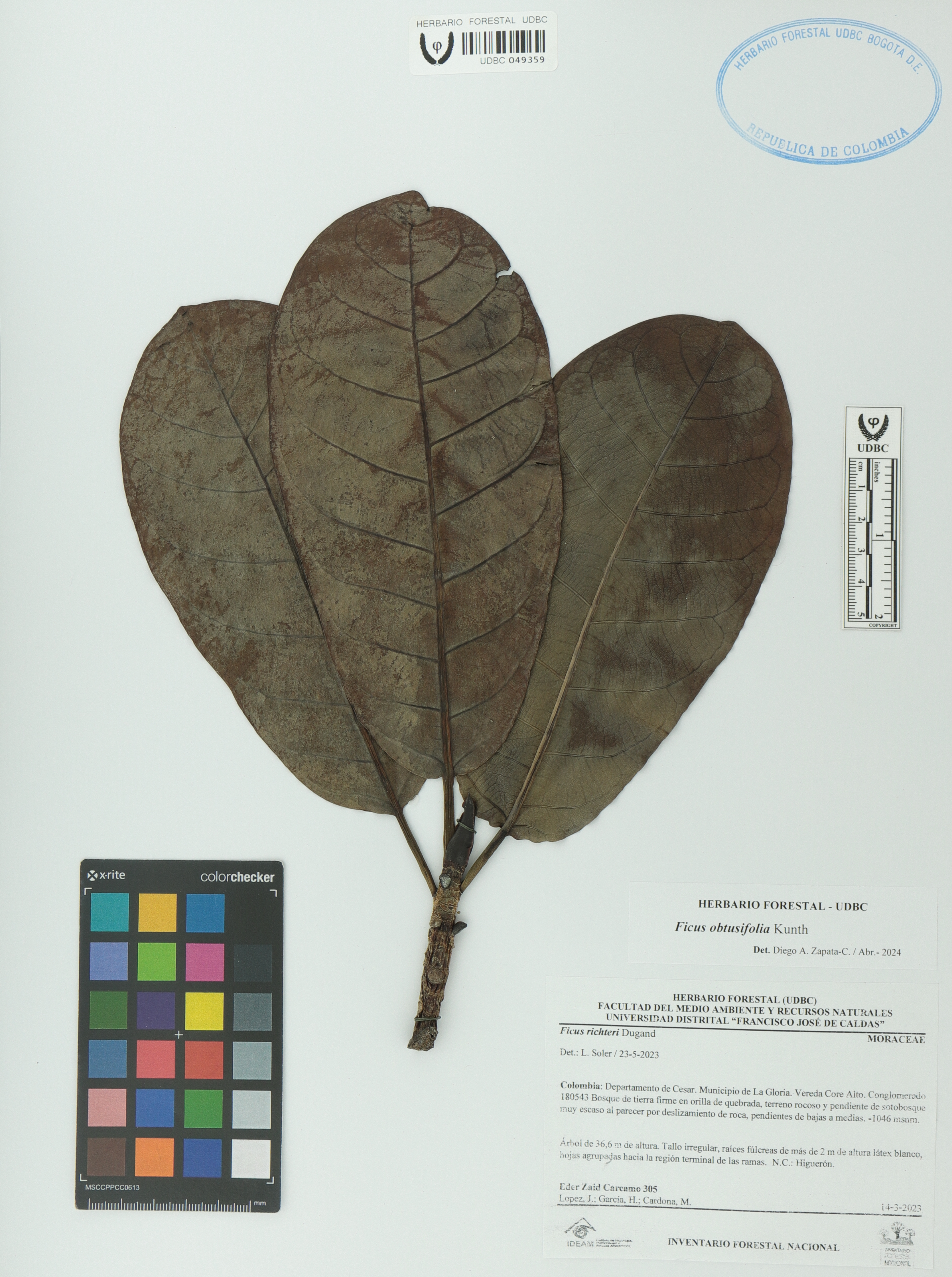 Fotografía del ejemplar Cárcamo-L., E. 305, determinado como Ficus sp. en el año 2023