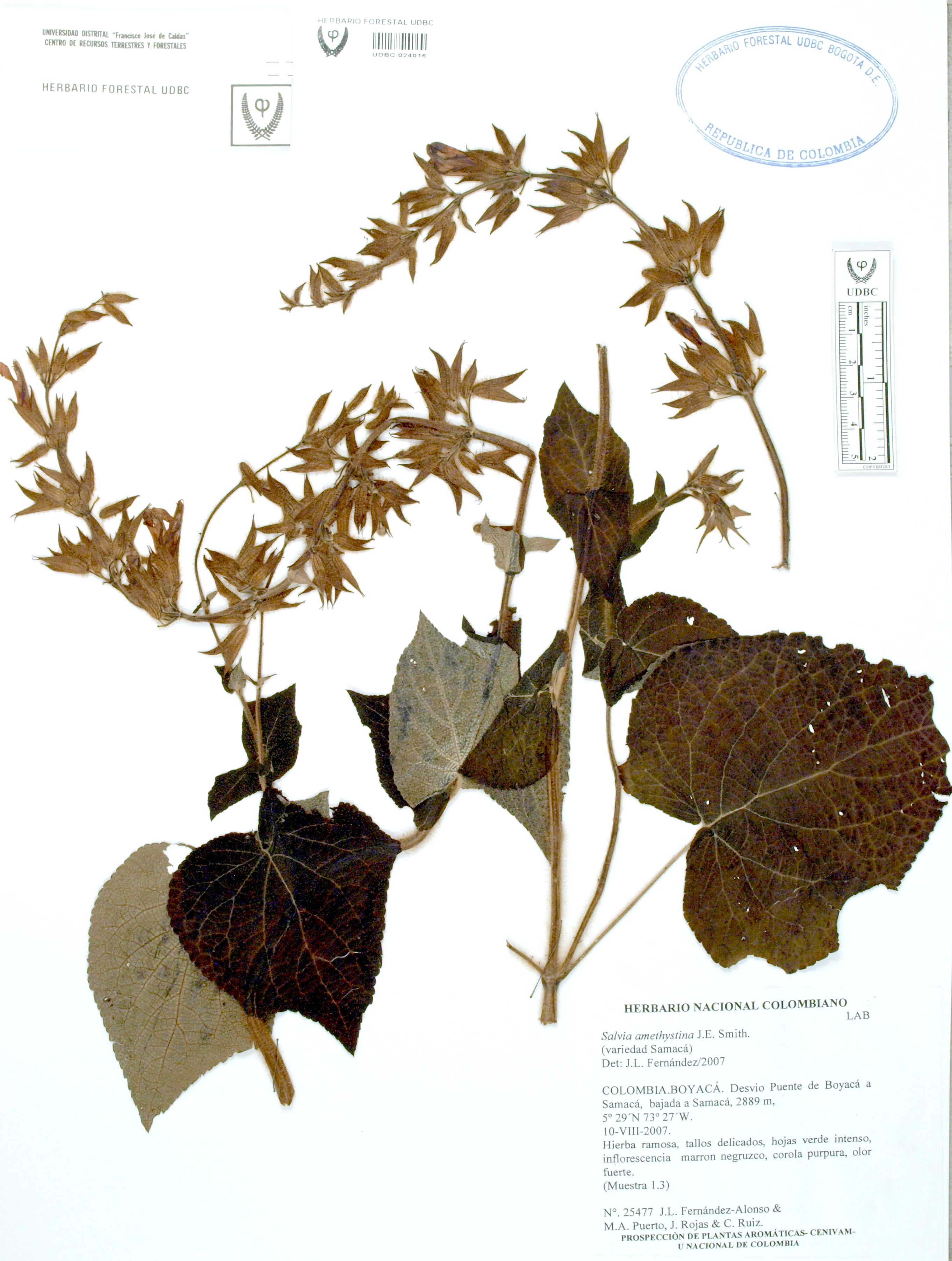 | dc.description | Fotografía del ejemplar Fernández-Alonso, J. 25477, determinado como Salvia amethystina en el año 2007 | |