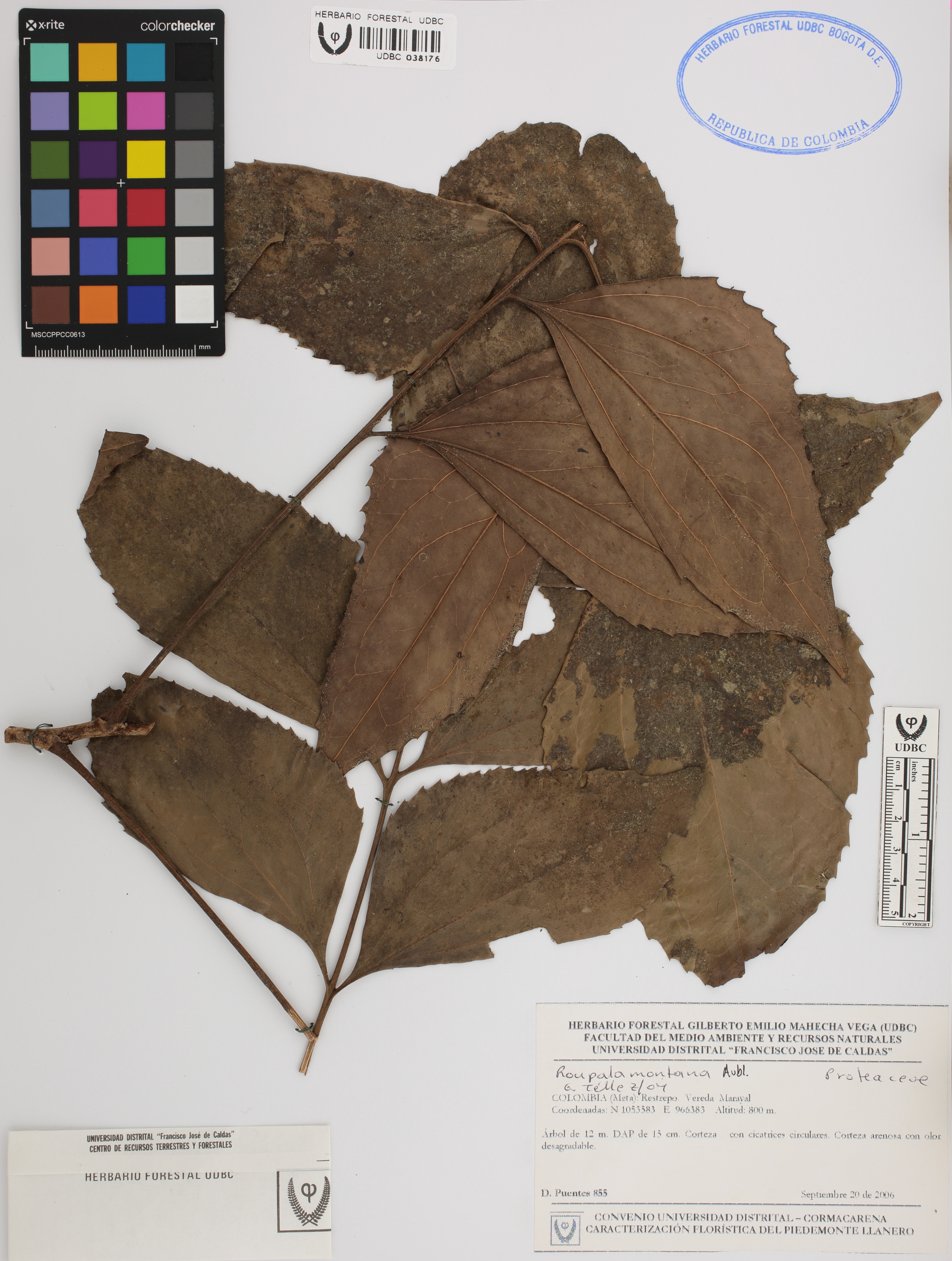 Fotografía del ejemplar Puentes, D. 855, determinado como Roupala montana en el año 2004