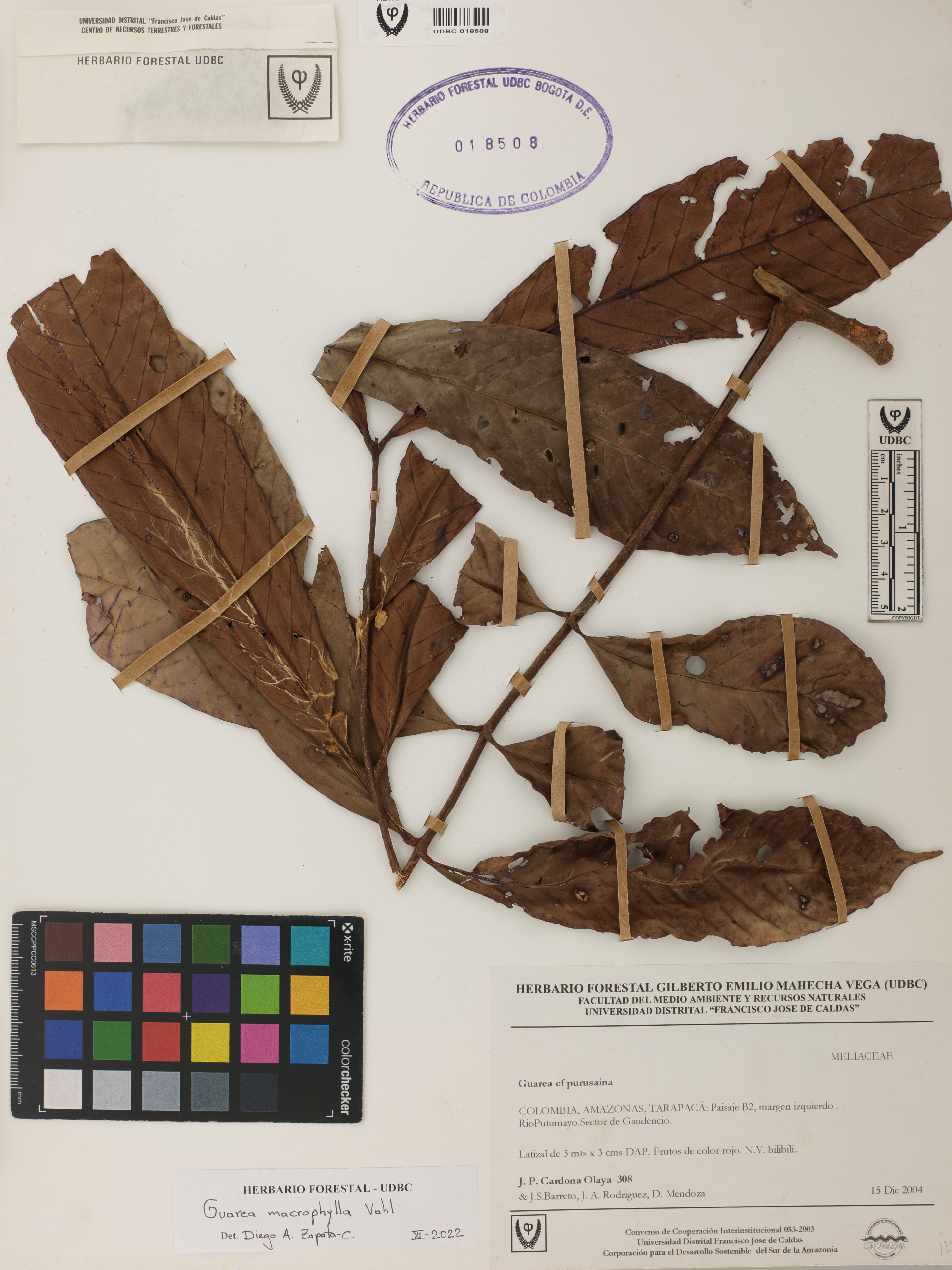 Fotografía del ejemplar Cardona, J. 308, determinado como Guarea macrophylla en el año 2022