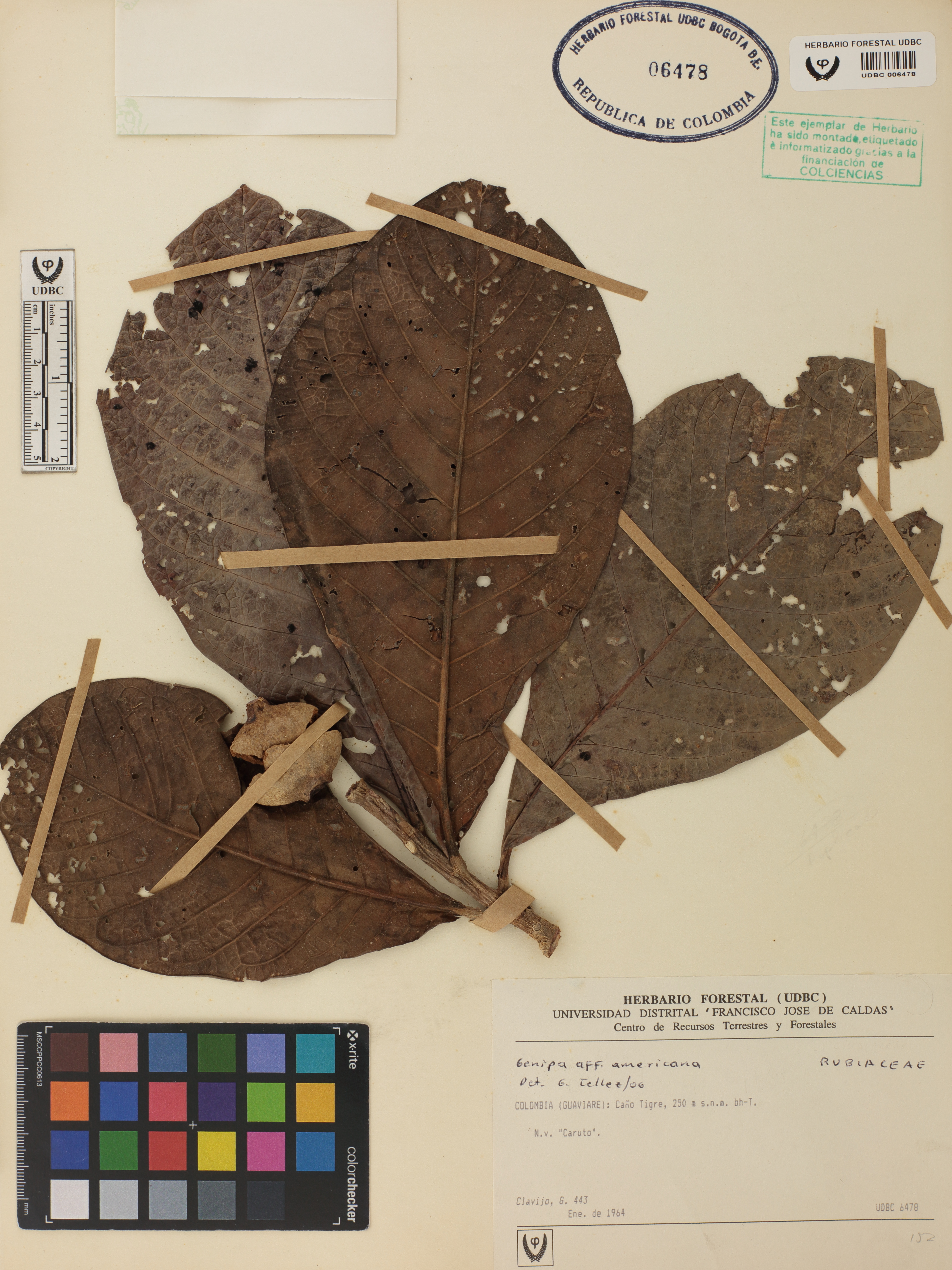 Fotografía del ejemplar Clavijo, G. 443, determinado como Genipa americana en el año 2006