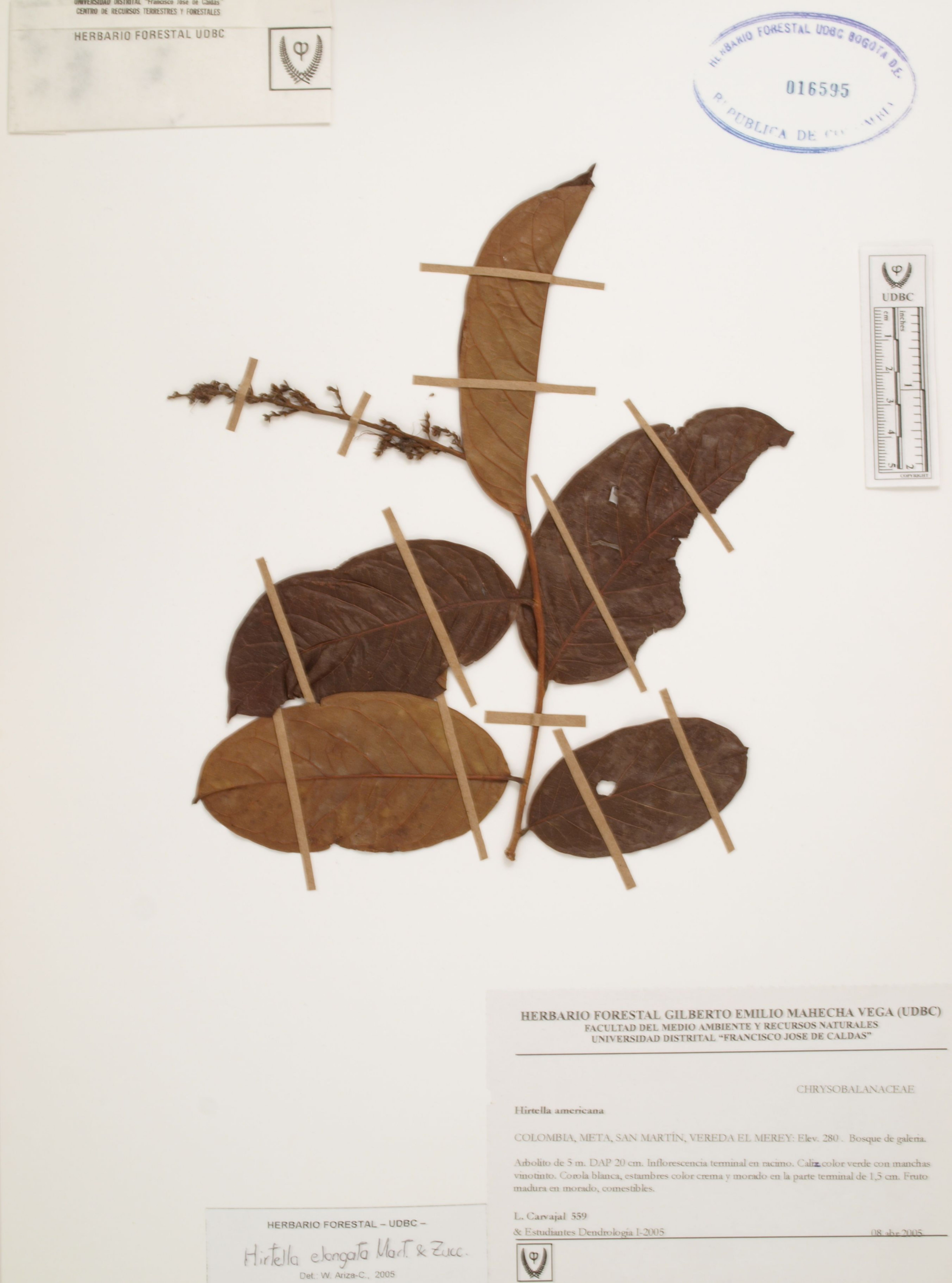 Fotografía del ejemplar Carvajal, L. 559, determinado como Hirtella elongata en el año 2005