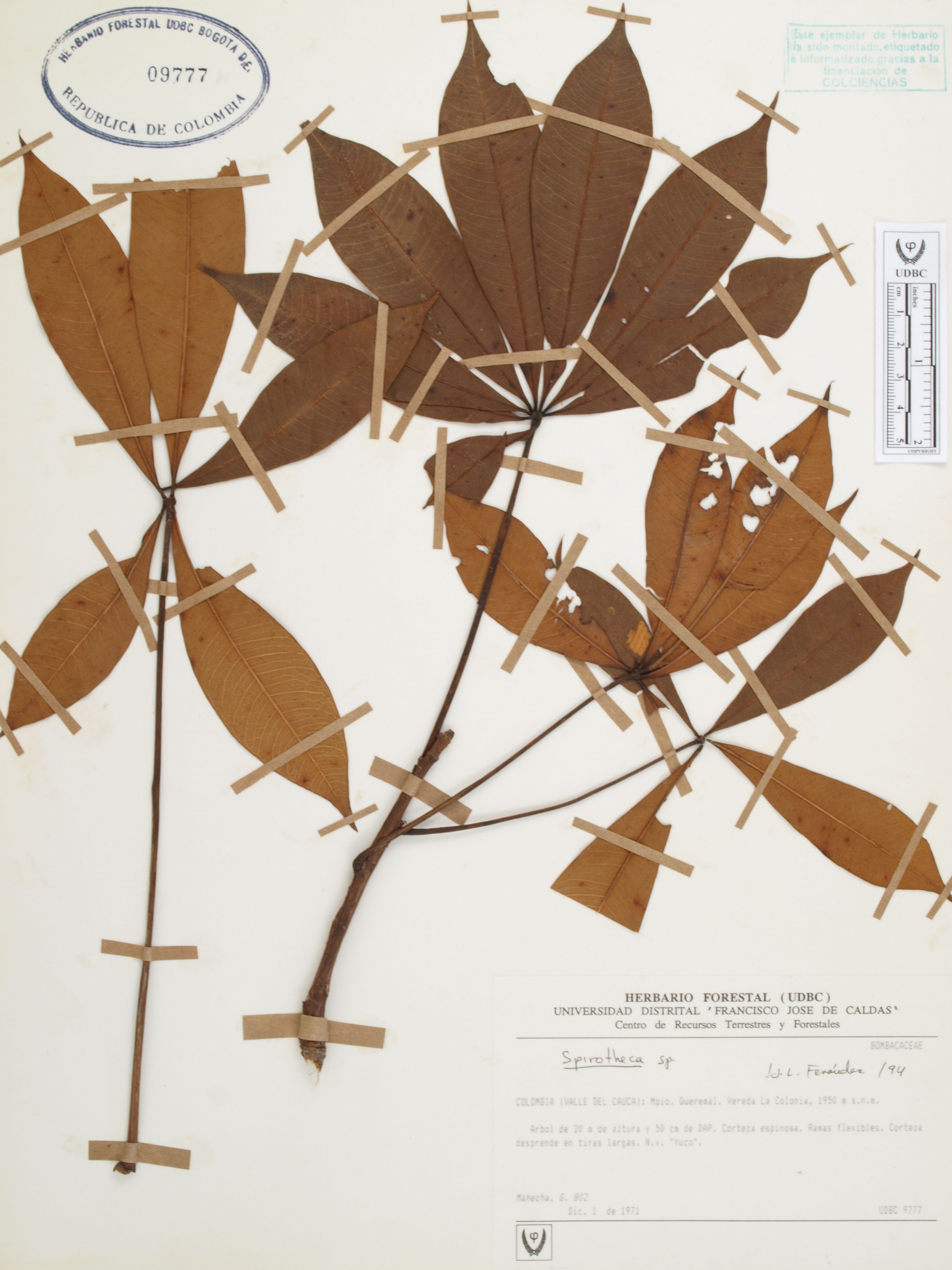 Fotografía del ejemplar Mahecha, G. 802, determinado como Spirotheca sp. en el año 1994
