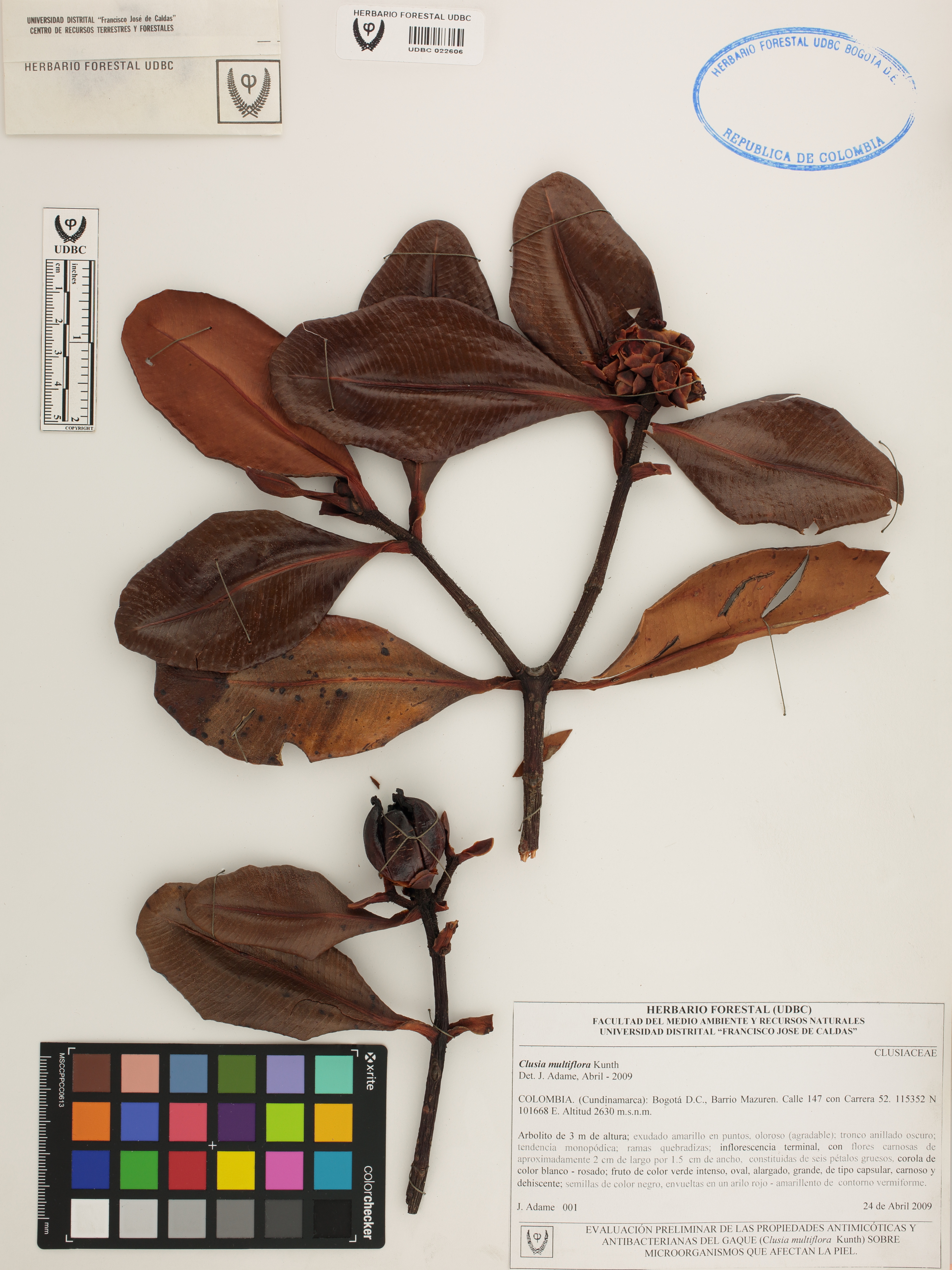Fotografía del ejemplar Adame, J. 1, determinado como Clusia multiflora en el año 2009
