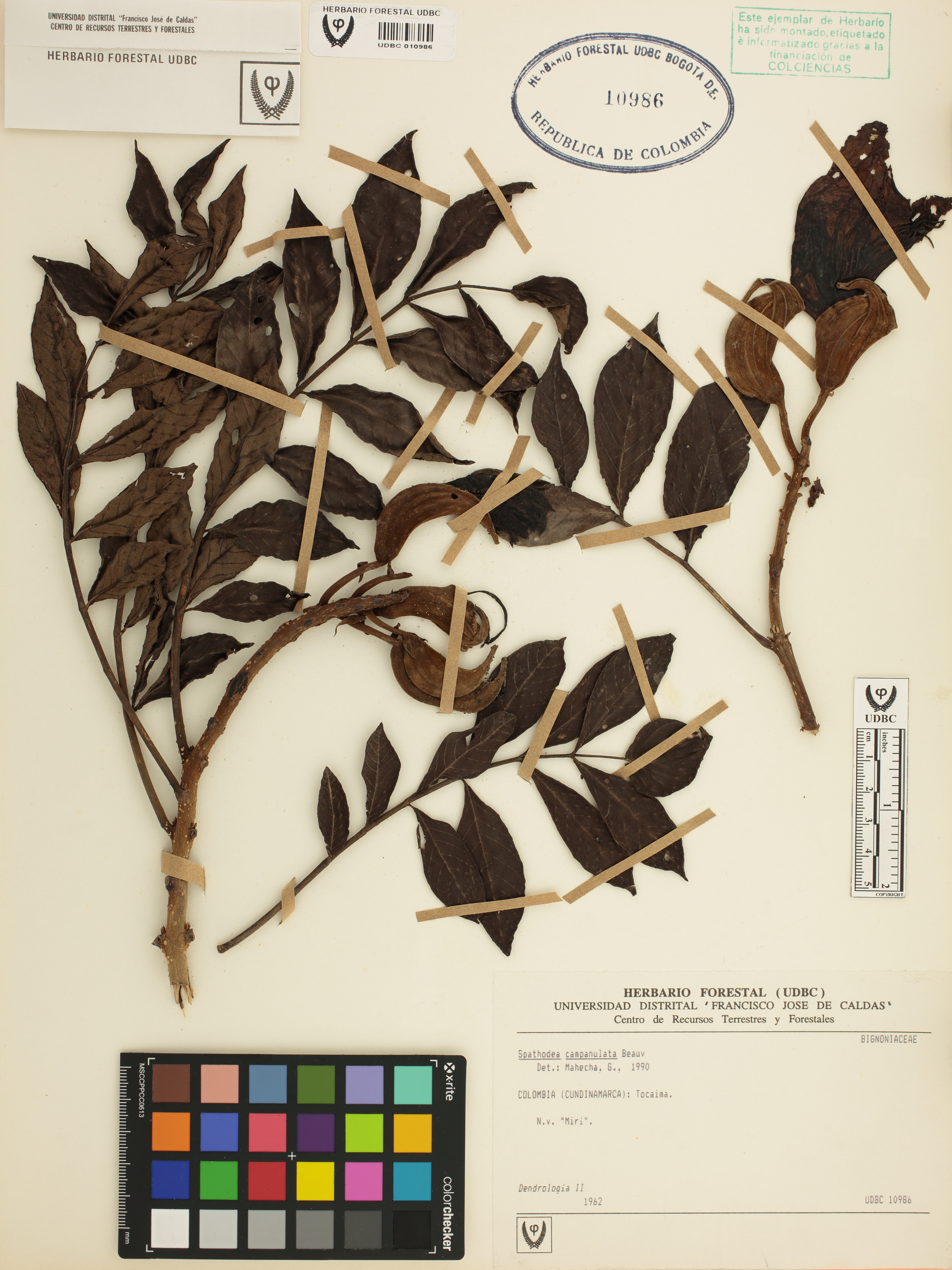 Fotografía del ejemplar Dendrología II- 1962,, determinado como Spathodea campanulata en el año 1990