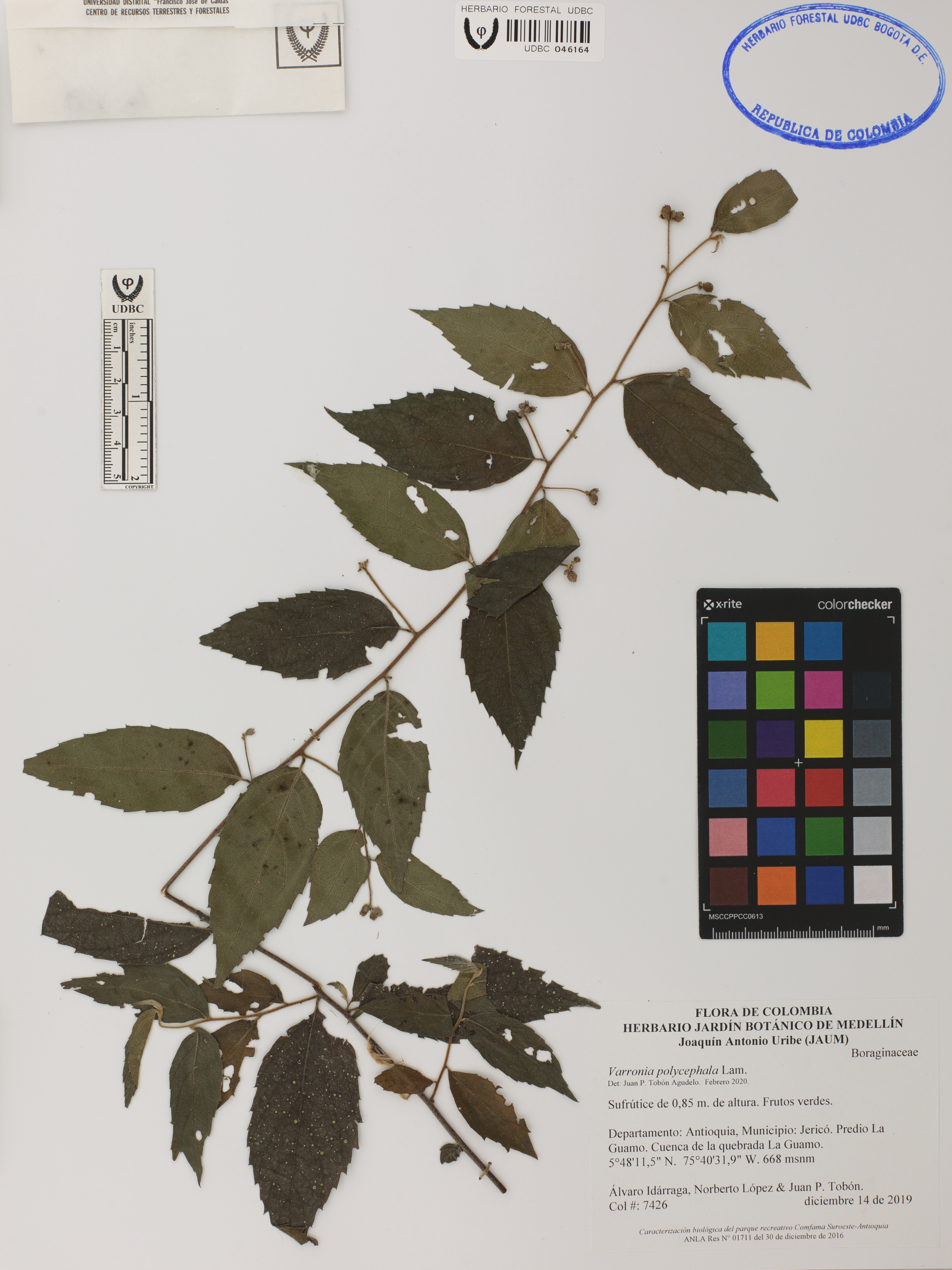Fotografía del ejemplar Idárraga, Á. 7426, determinado como Varronia polycephala en el año 2020