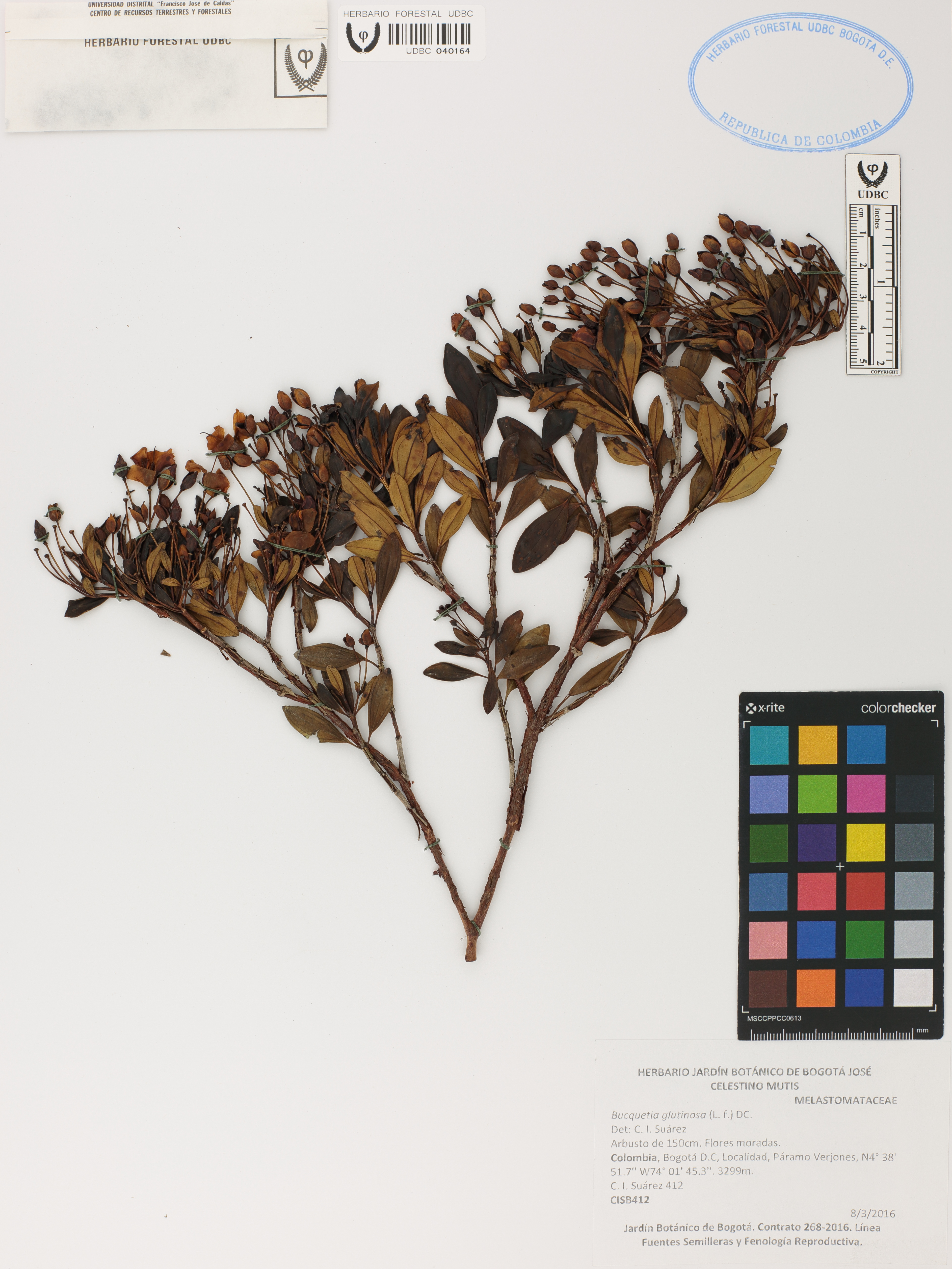 Fotografía del ejemplar Suárez, C. 412, determinado como Bucquetia glutinosa