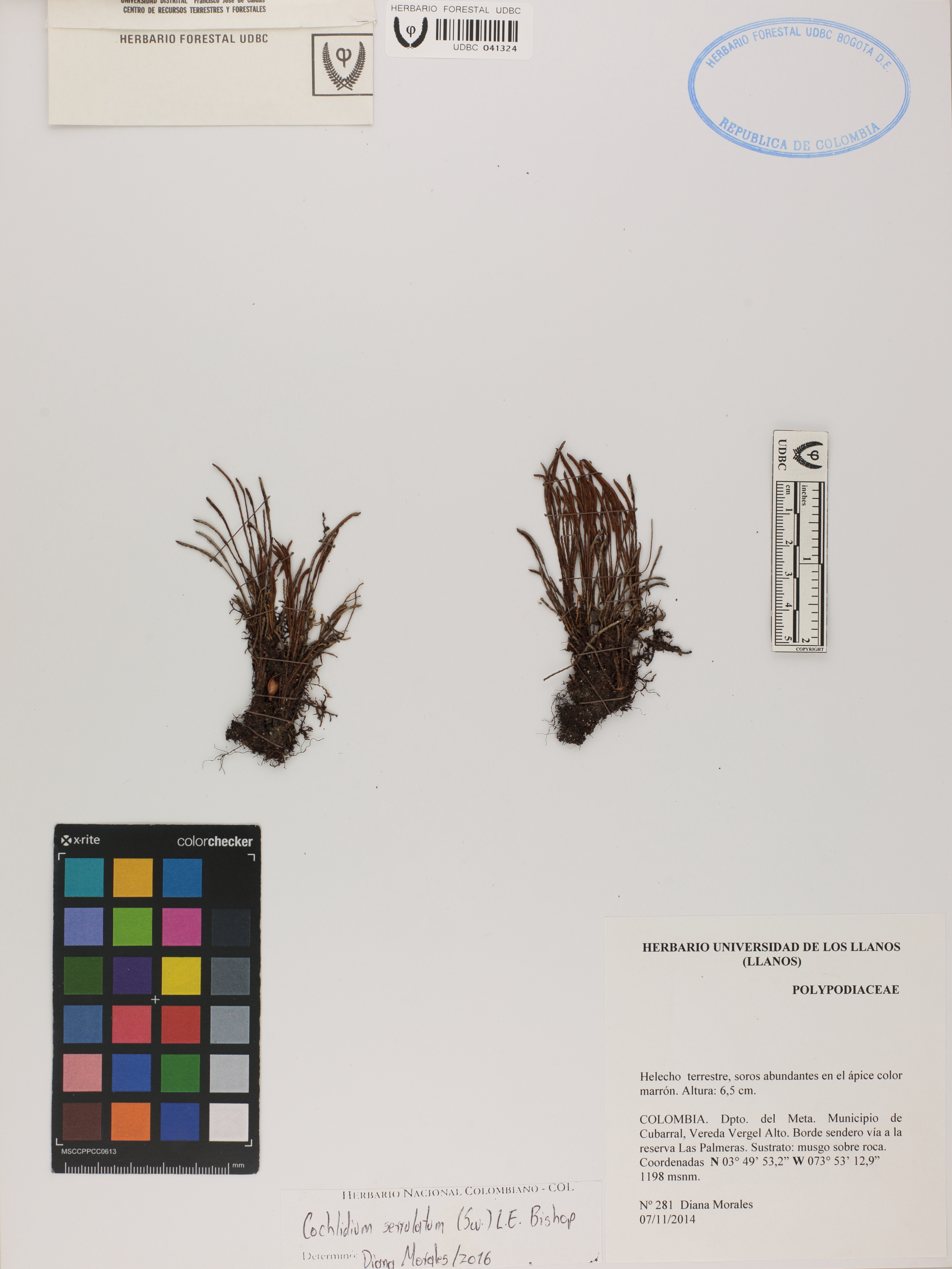 Fotografía del ejemplar Morales, D. 281, determinado como Cochlidium serrulatum en el año 2016