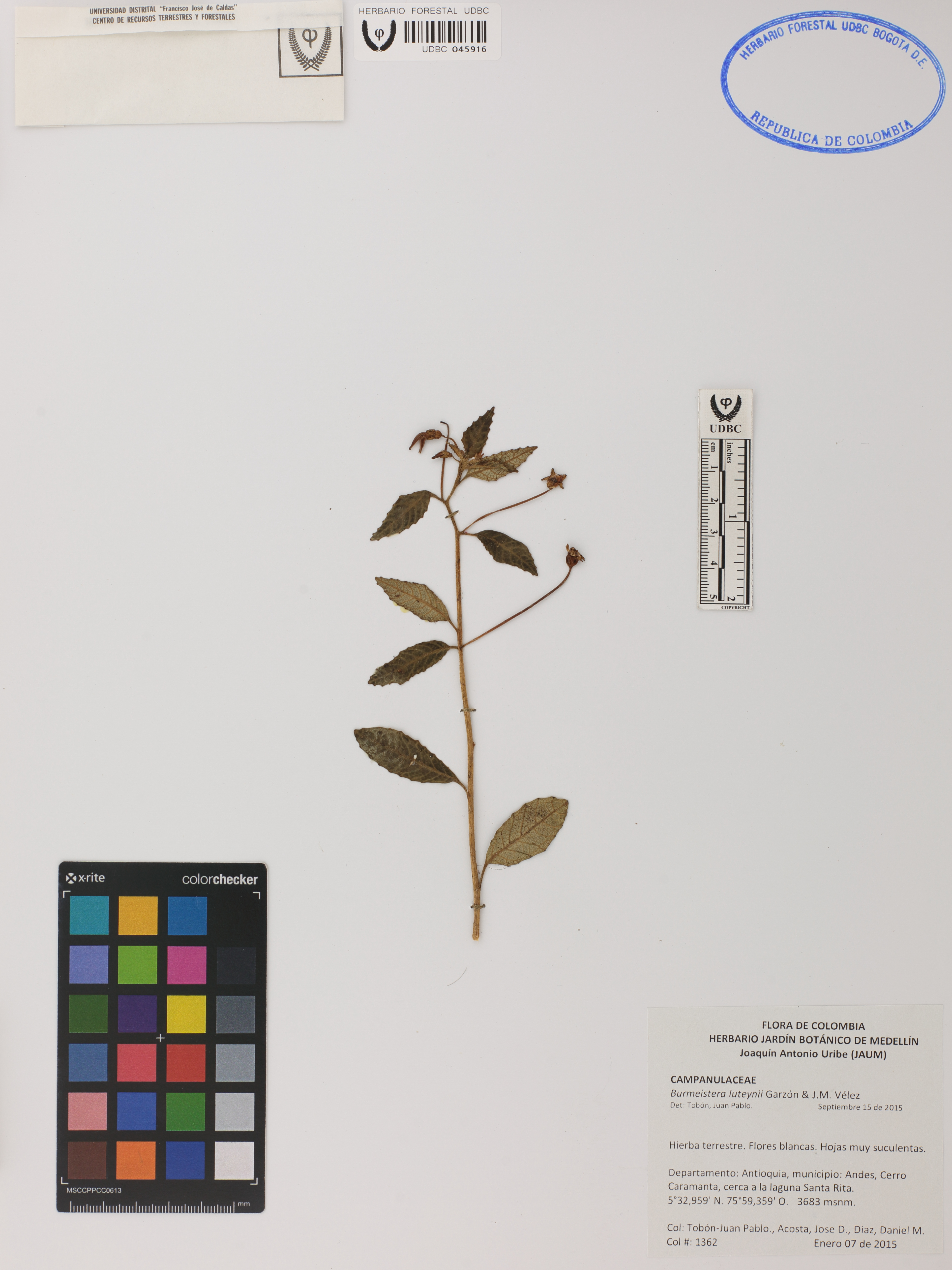 Fotografía del ejemplar Tobón-Agudelo, J. 1362, determinado como Burmeistera luteynii en el año 2015