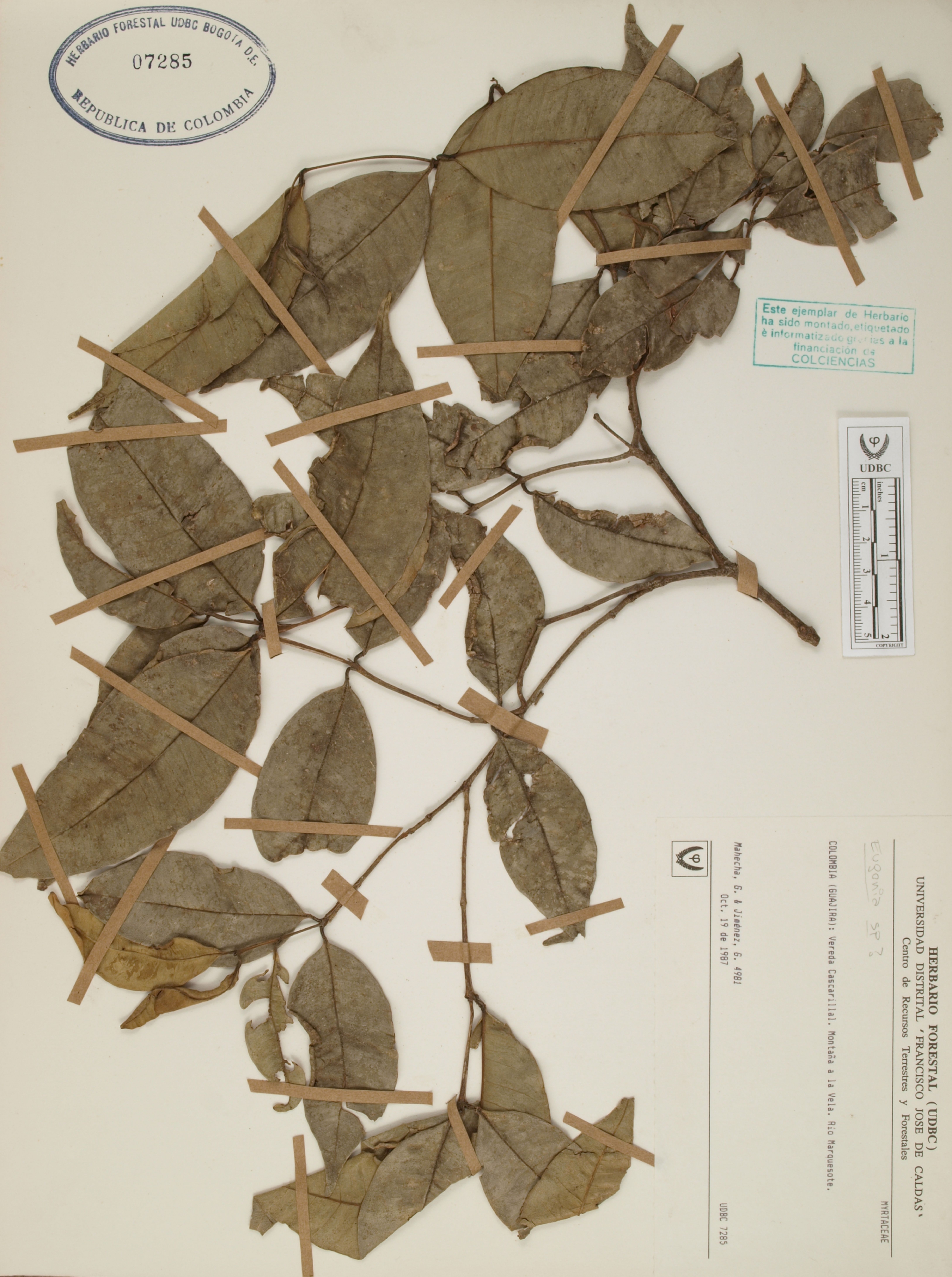 Fotografía del ejemplar Mahecha, G. 4981, determinado como Eugenia sp. en el año 1995