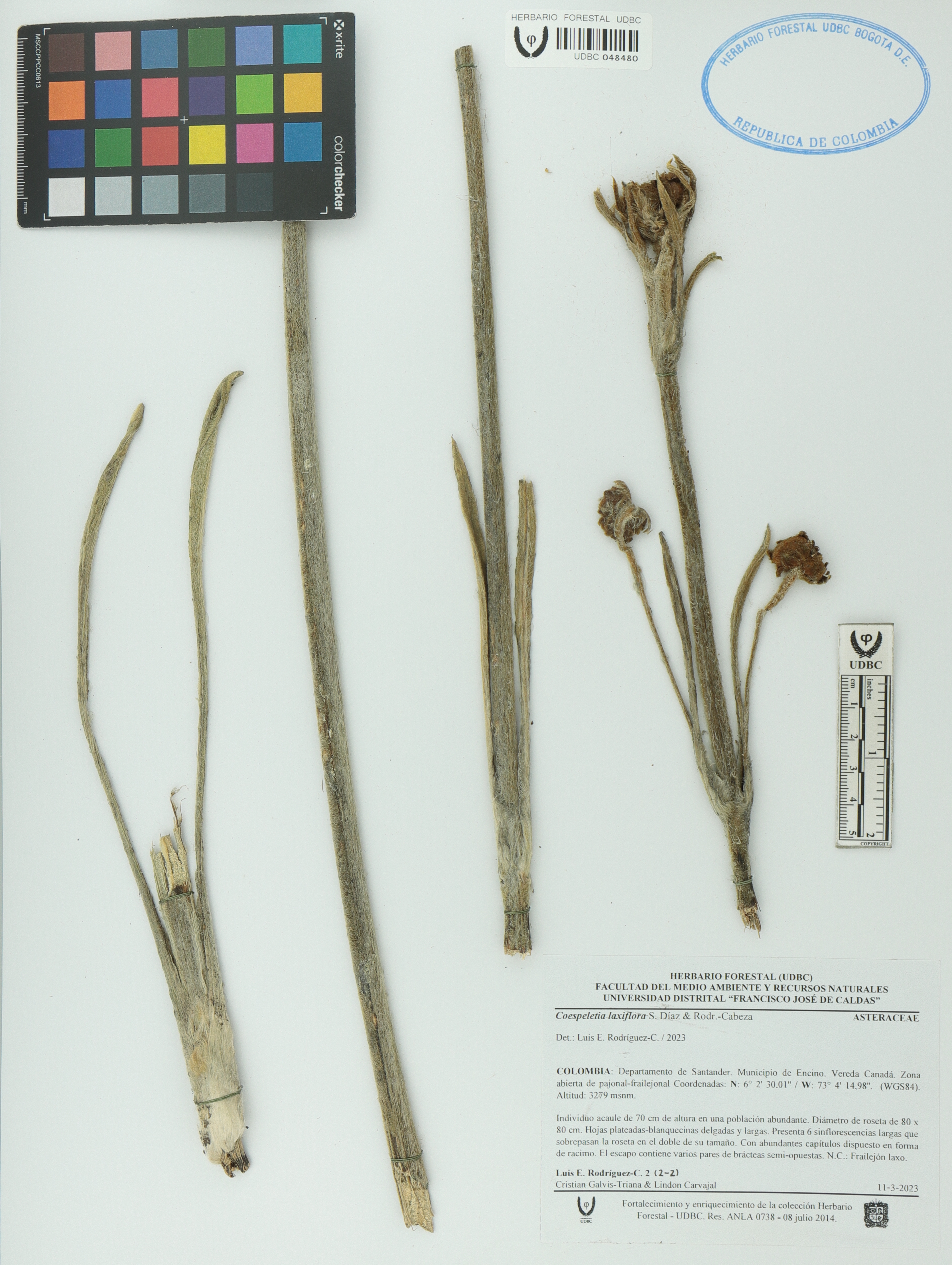 | dc.description | Fotografía del ejemplar Rodríguez-C., Luis 2, determinado como Coespeletia laxiflora en el año 2023 | |