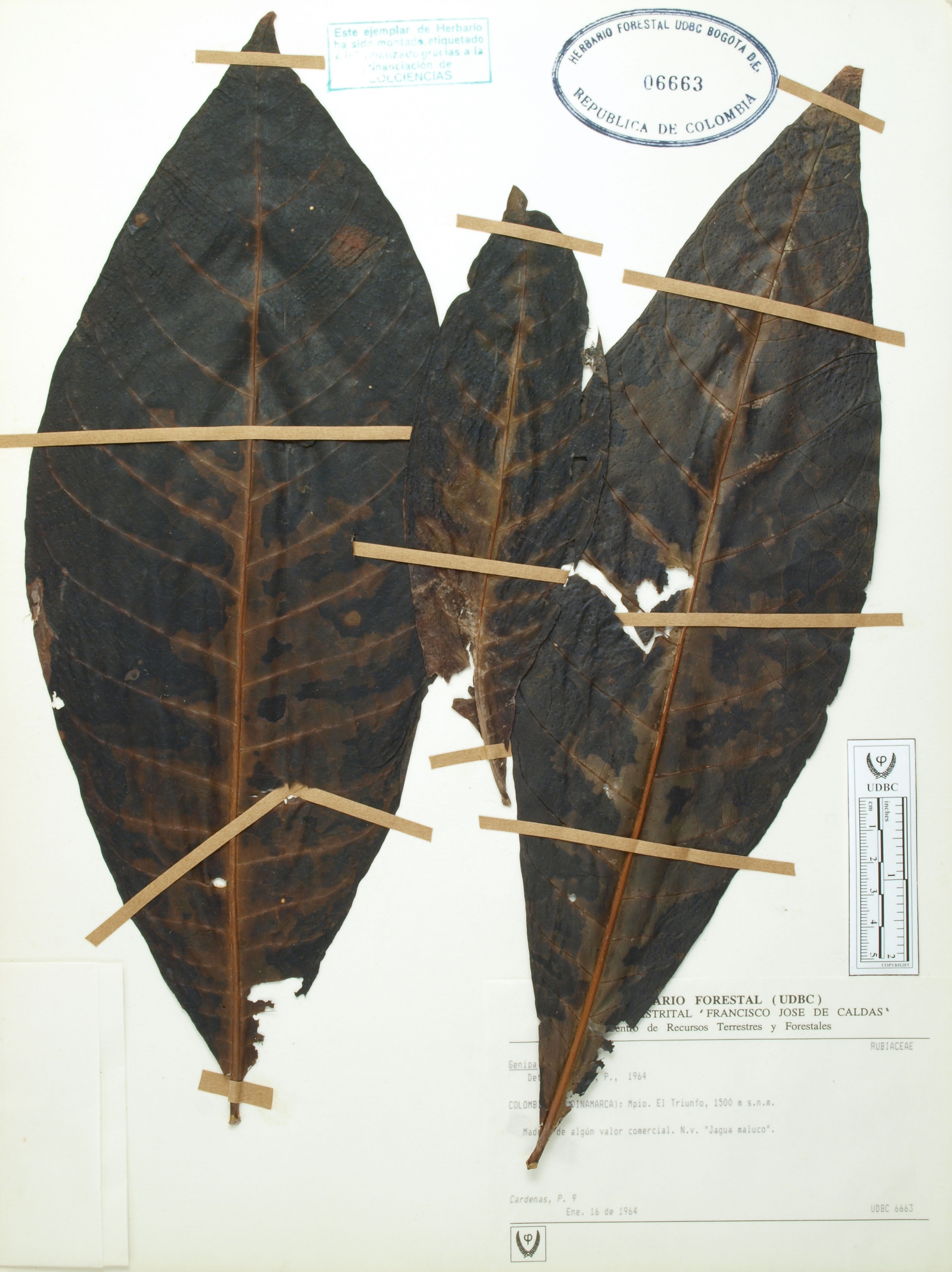 | dc.description | Fotografía del ejemplar Cárdenas, P. 9, determinado como Genipa americana en el año 1964 | |