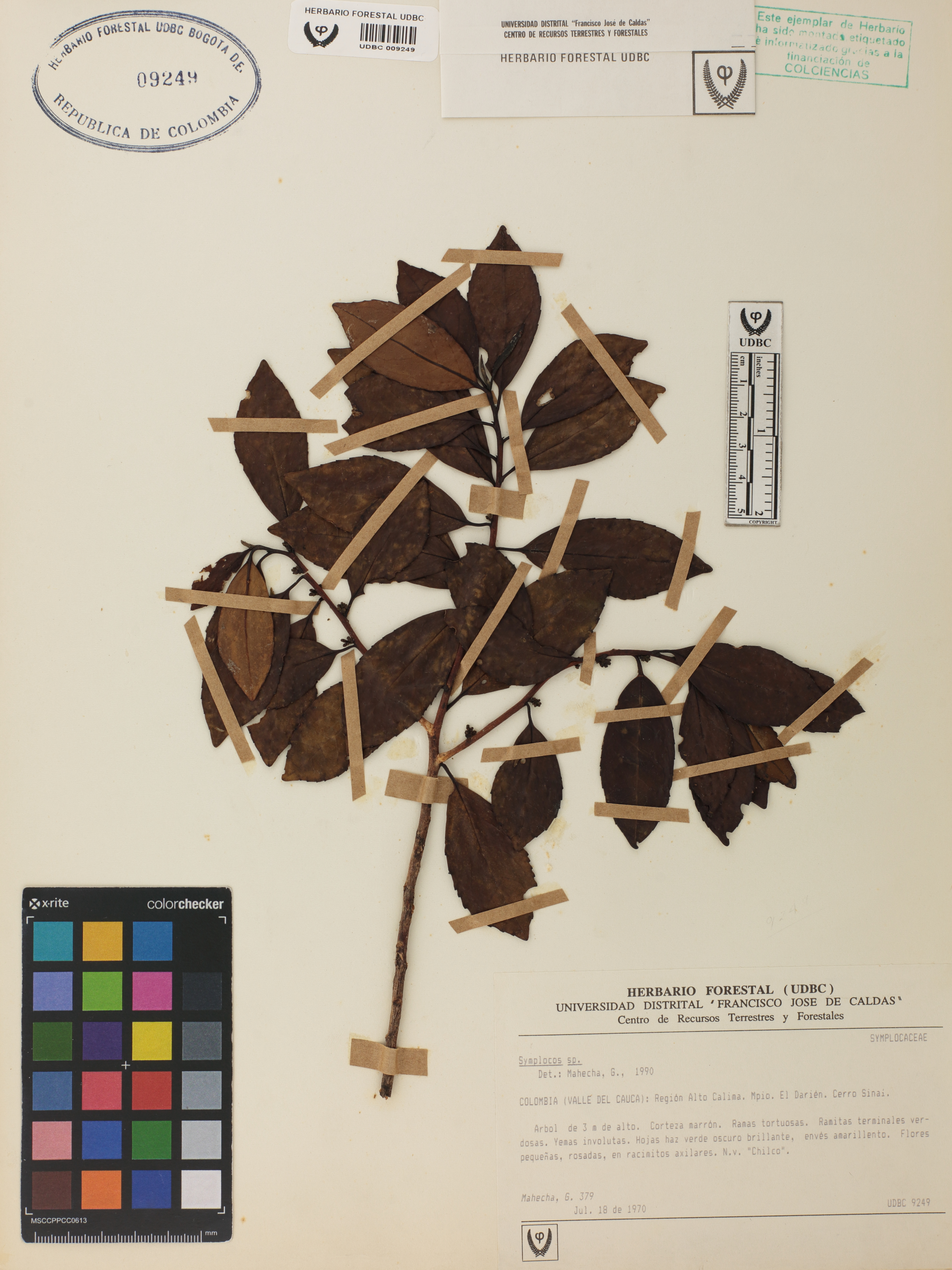 Fotografía del ejemplar Mahecha, G. 379, determinado como Symplocos sp. en el año 1990