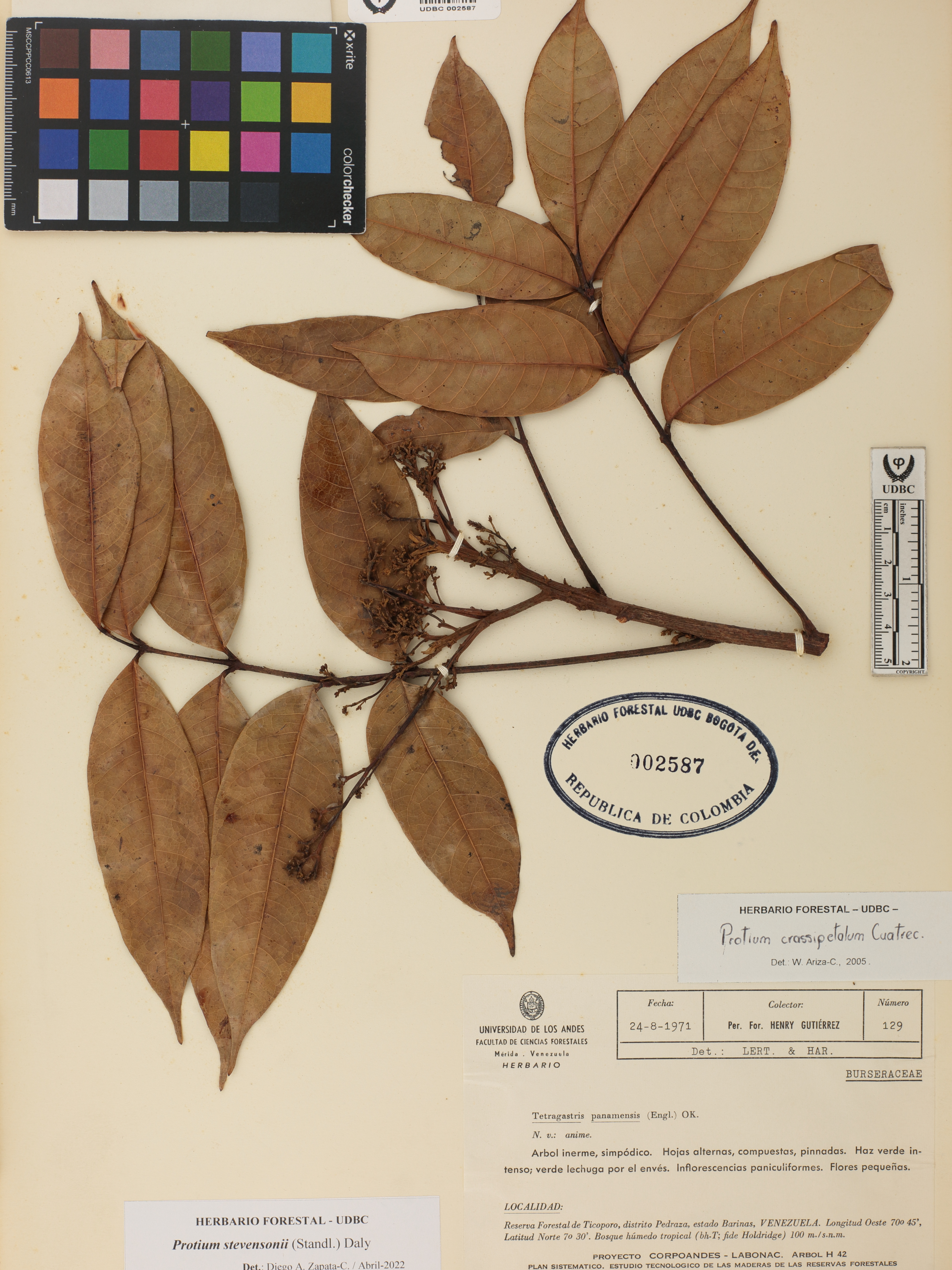 | dc.description | Fotografía del ejemplar Gutiérrez, H. 129, determinado como Protium stevensonii en el año 2022 | |