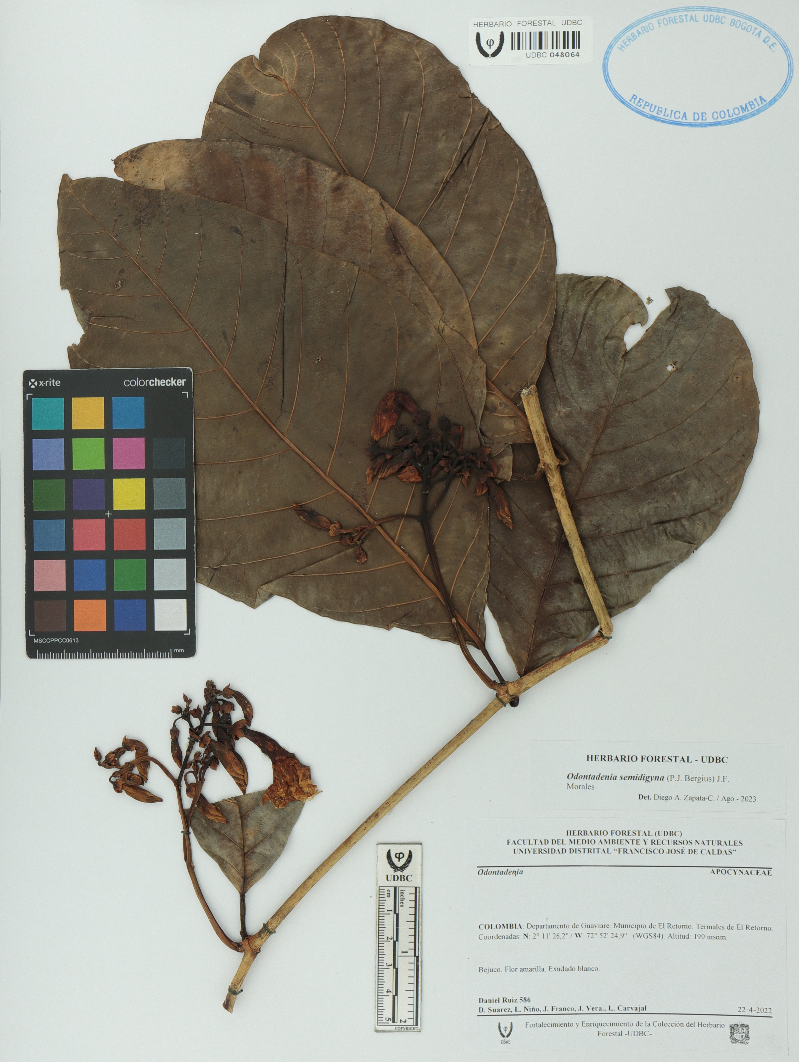dc.description | Fotografía del ejemplar Ruiz, Daniel 586, determinado como Odontadenia semidigyna en el año 2023 | |