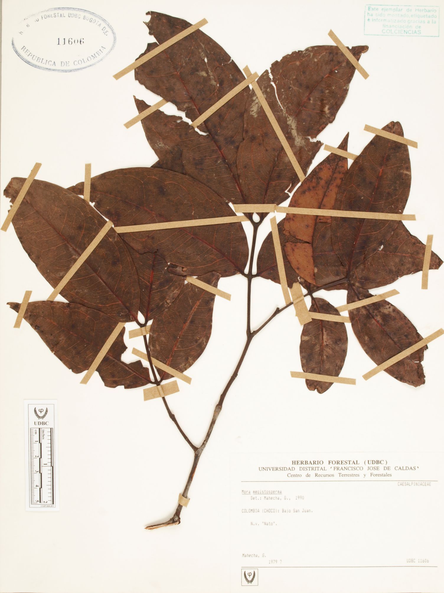 | dc.description | Fotografía del ejemplar Mahecha, G., determinado como Mora megistosperma en el año 1990 | |