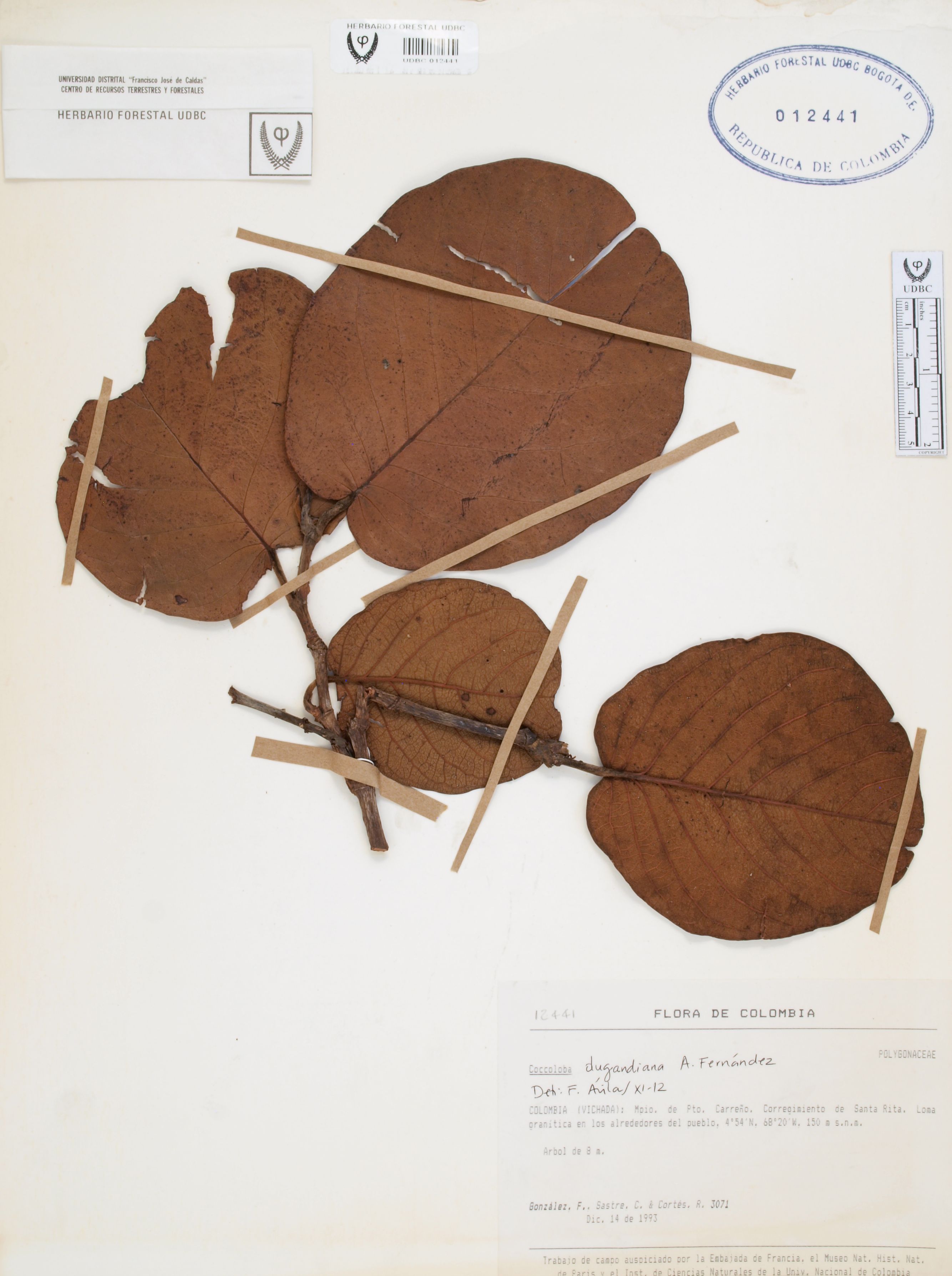 Fotografía del ejemplar González, F. 3071, determinado como Coccoloba dugandiana en el año 2012