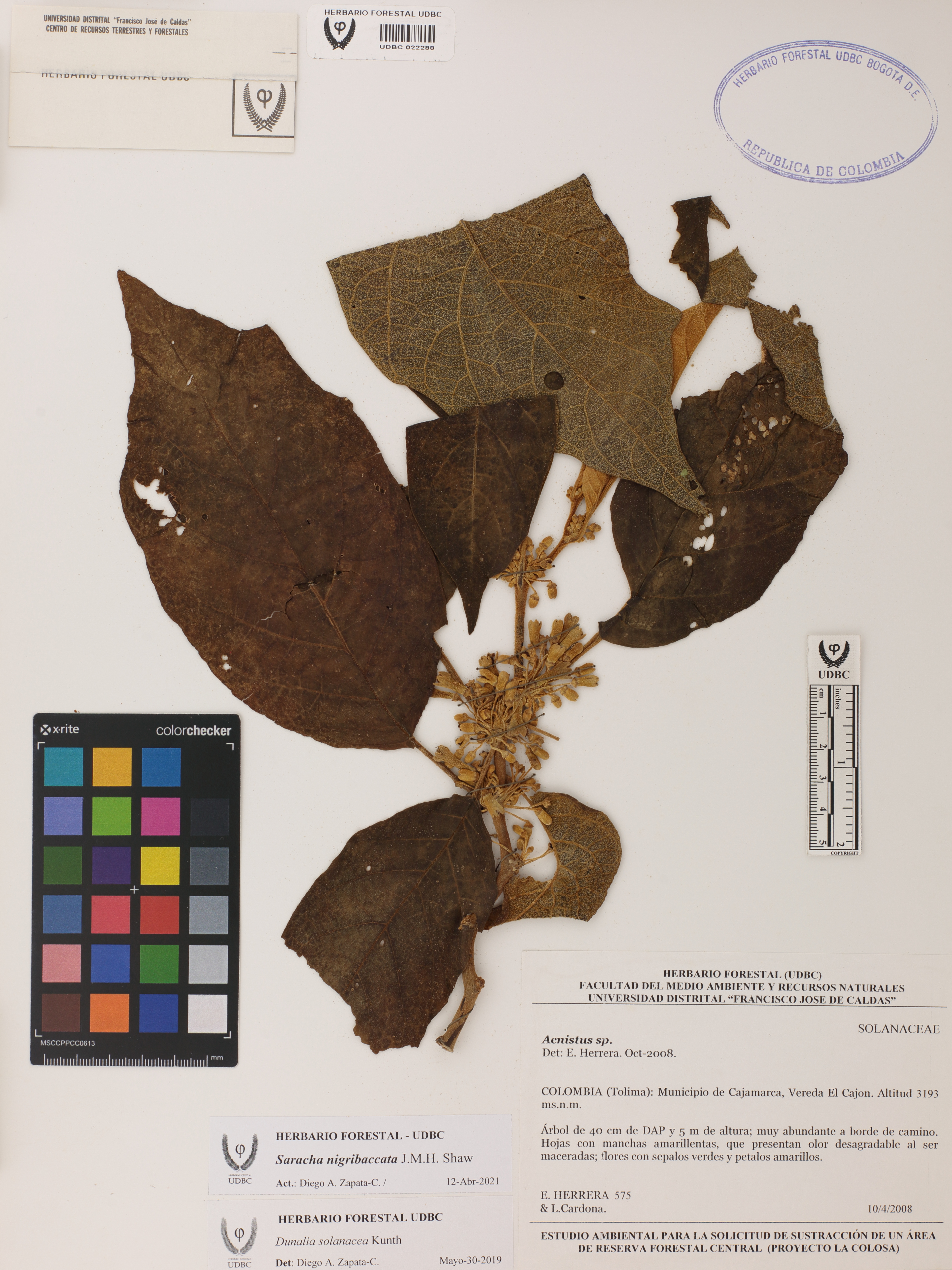 Fotografía del ejemplar Herrera, E. 575, determinado como Saracha nigribaccata en el año 2019