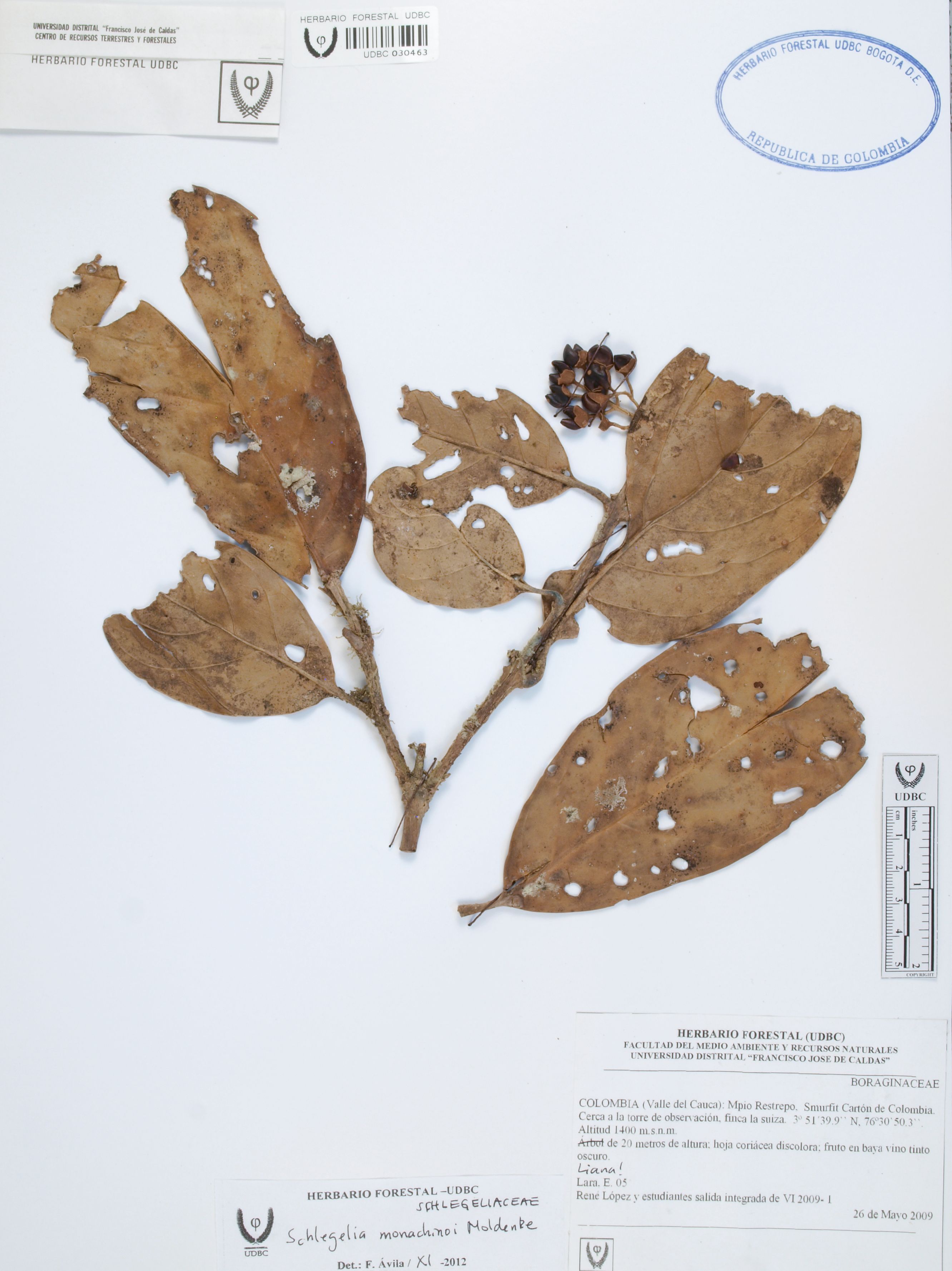 Fotografía del ejemplar Lara, E. 5, determinado como Schlegelia monachinoi en el año 2012