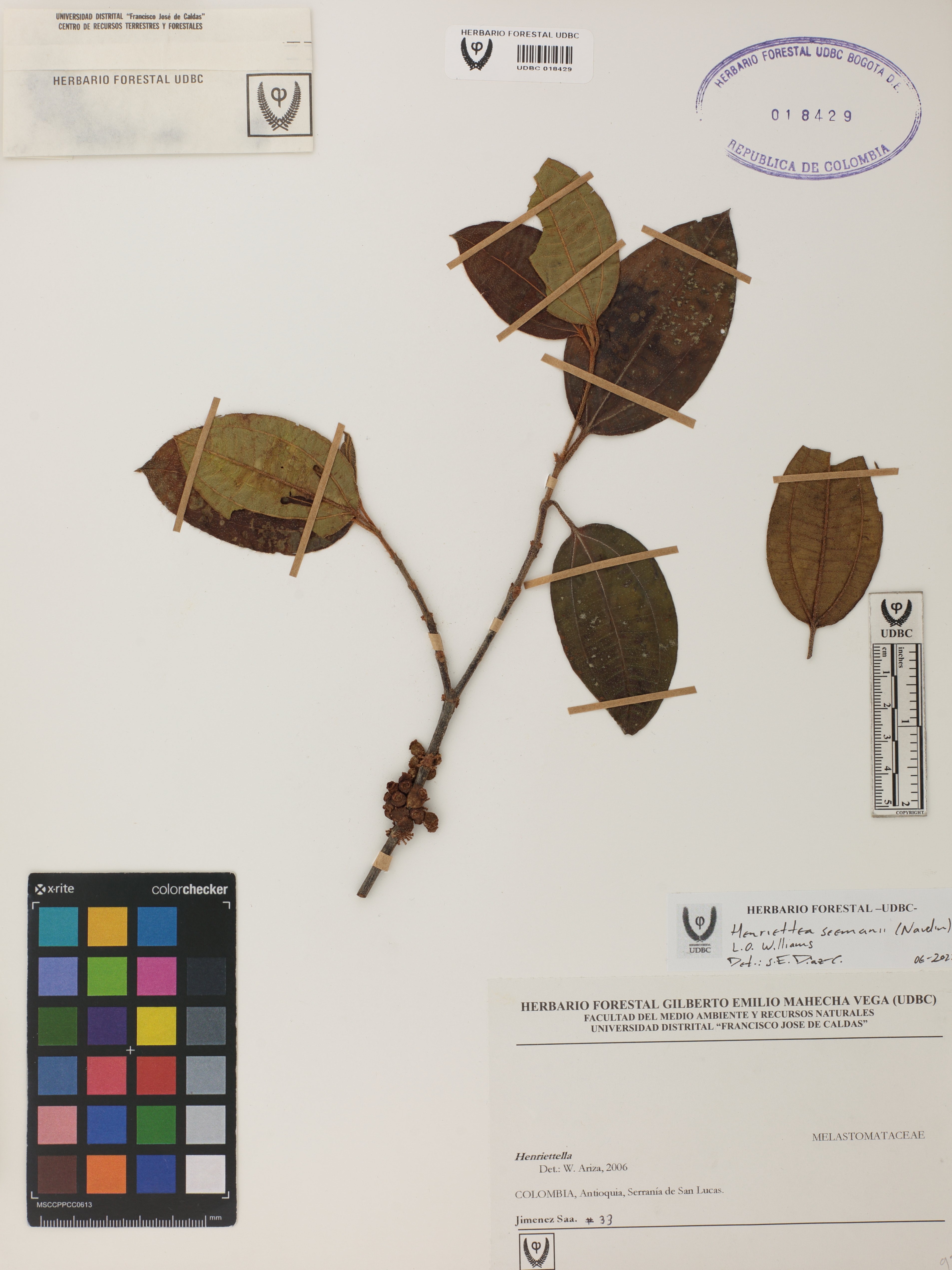 Fotografía del ejemplar Jiménez-Saa, H. 33, determinado como Henriettea seemannii en el año 2022